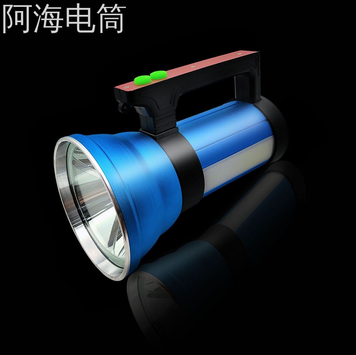 铝合金强光探照灯户外远射跨境手提灯带侧灯警示防水大功率手电筒