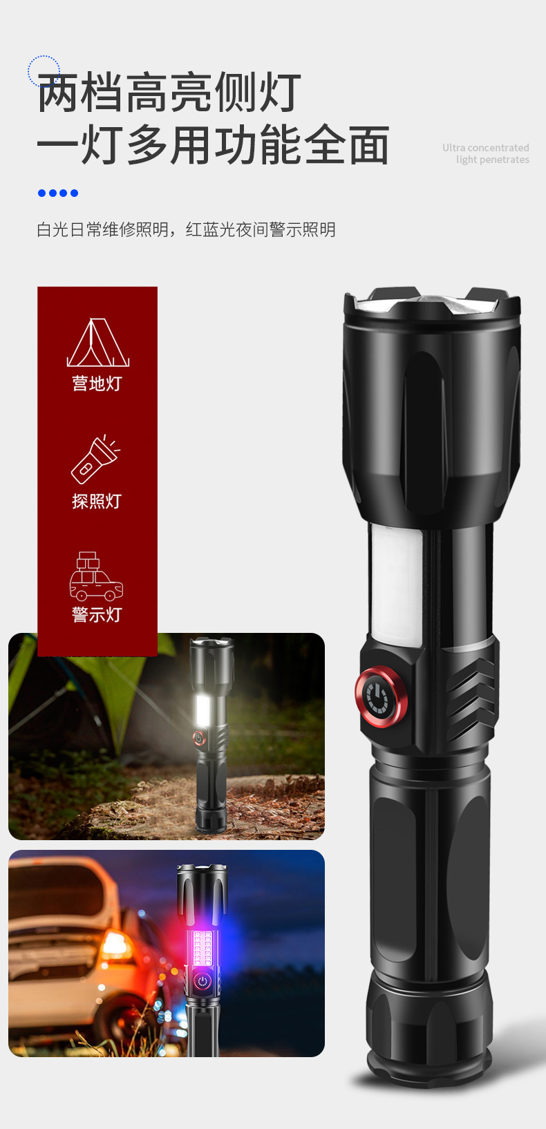 多功能双面便携式手提灯内置电池手电筒 便携户外野营夜间探照灯 投诉