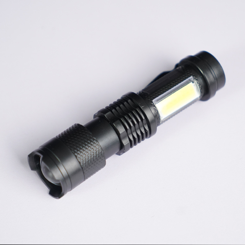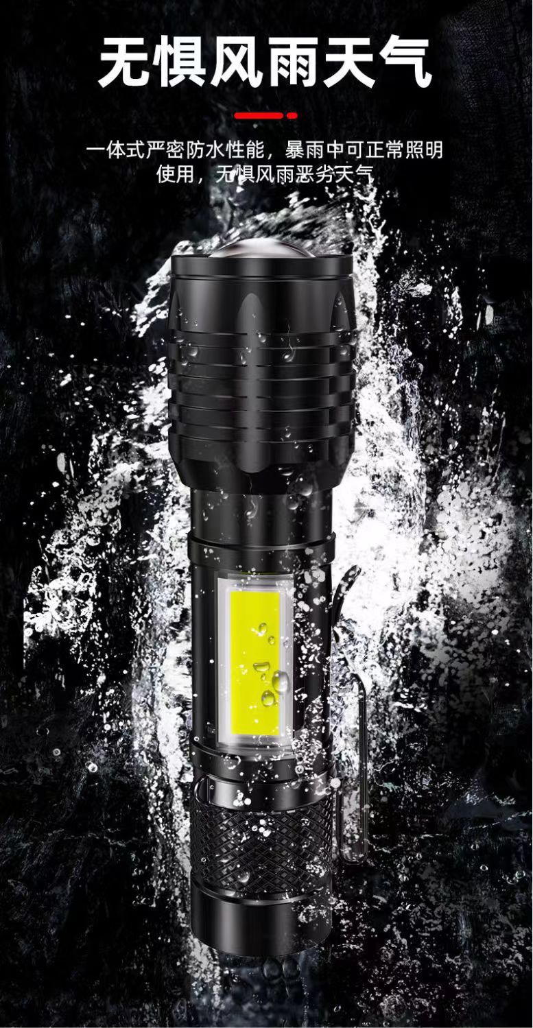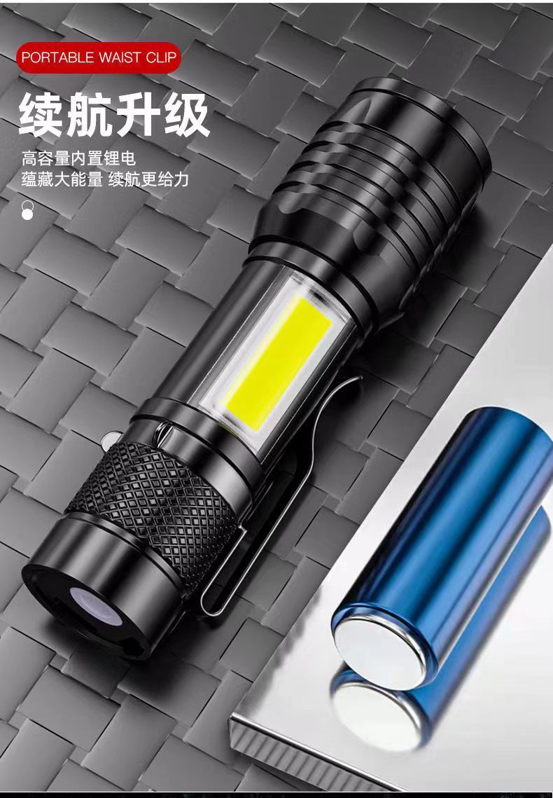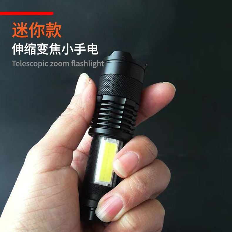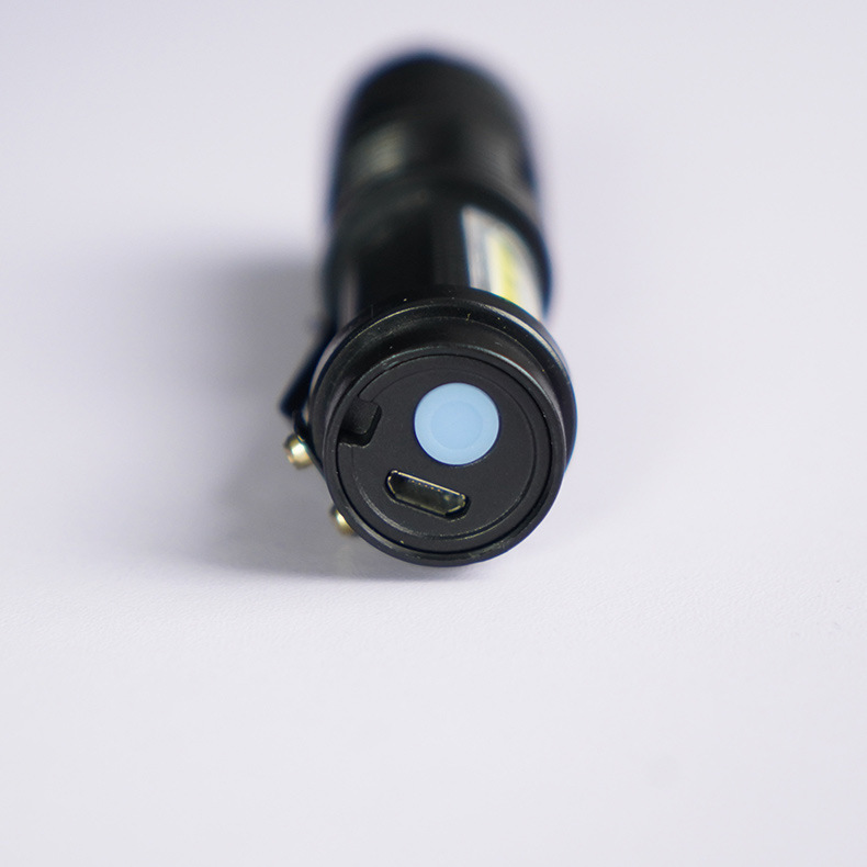 塑料强光手电筒迷你USB充电LED超亮家用户外照明变焦强光伸缩便携