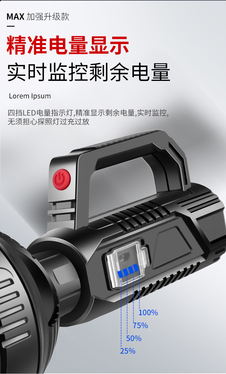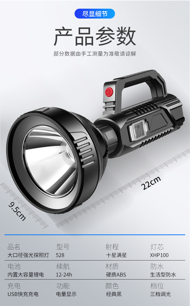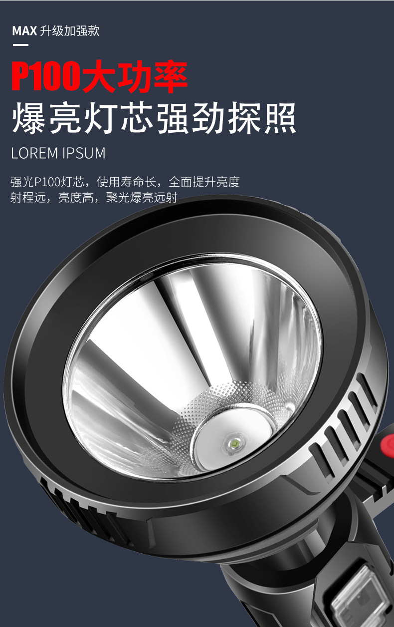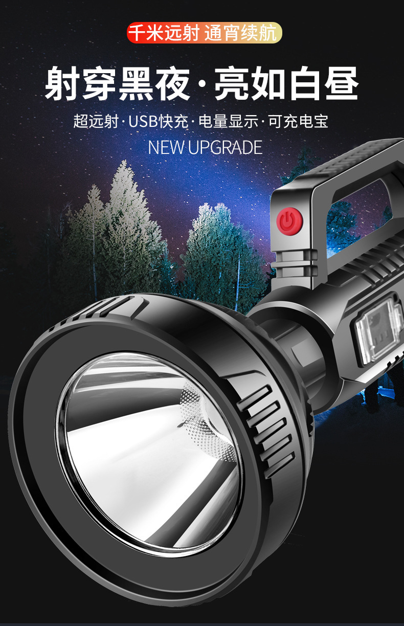 超亮手电筒强光充电户外远射探照灯便携家用防水多功能led氙气灯