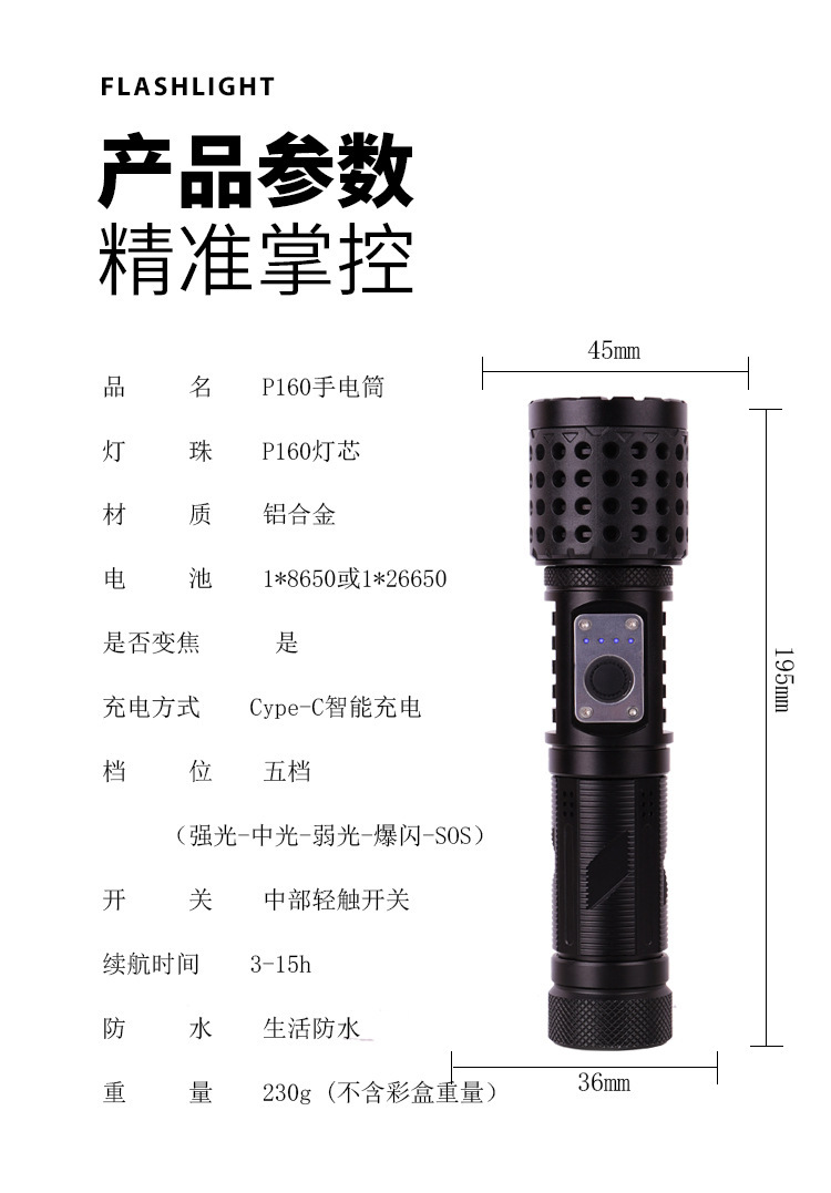 | P160手电筒+Type-c线+1*26650电池 | ¥5100 | 16888个 |