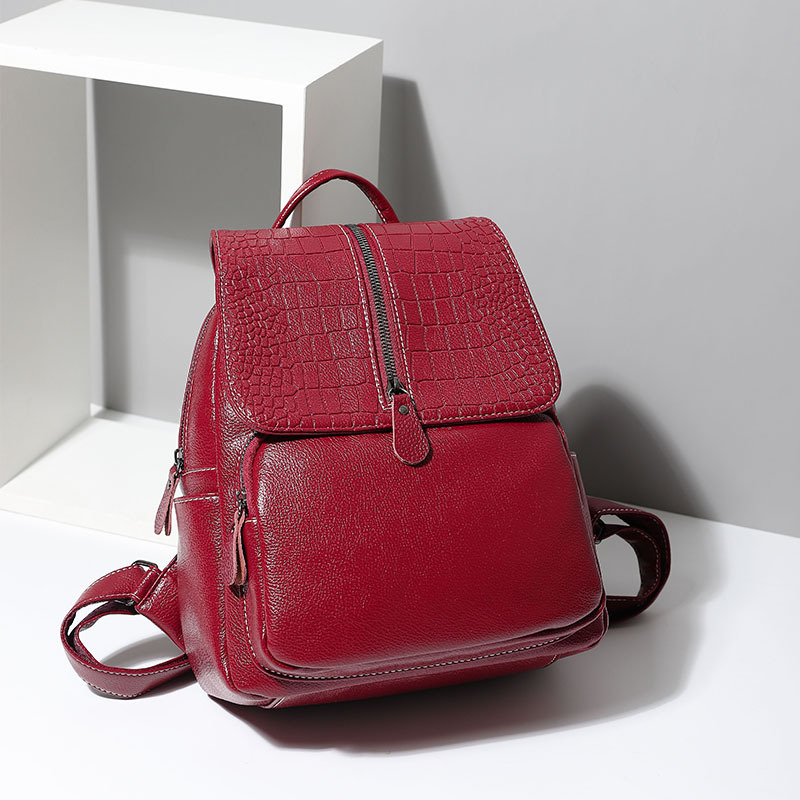 鳄鱼纹跨境双肩包简约女士通勤PU大容量翻盖包女包广州潮流女包 English | 投诉