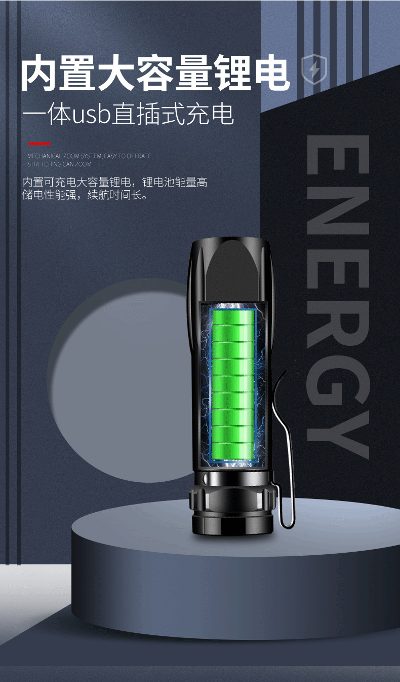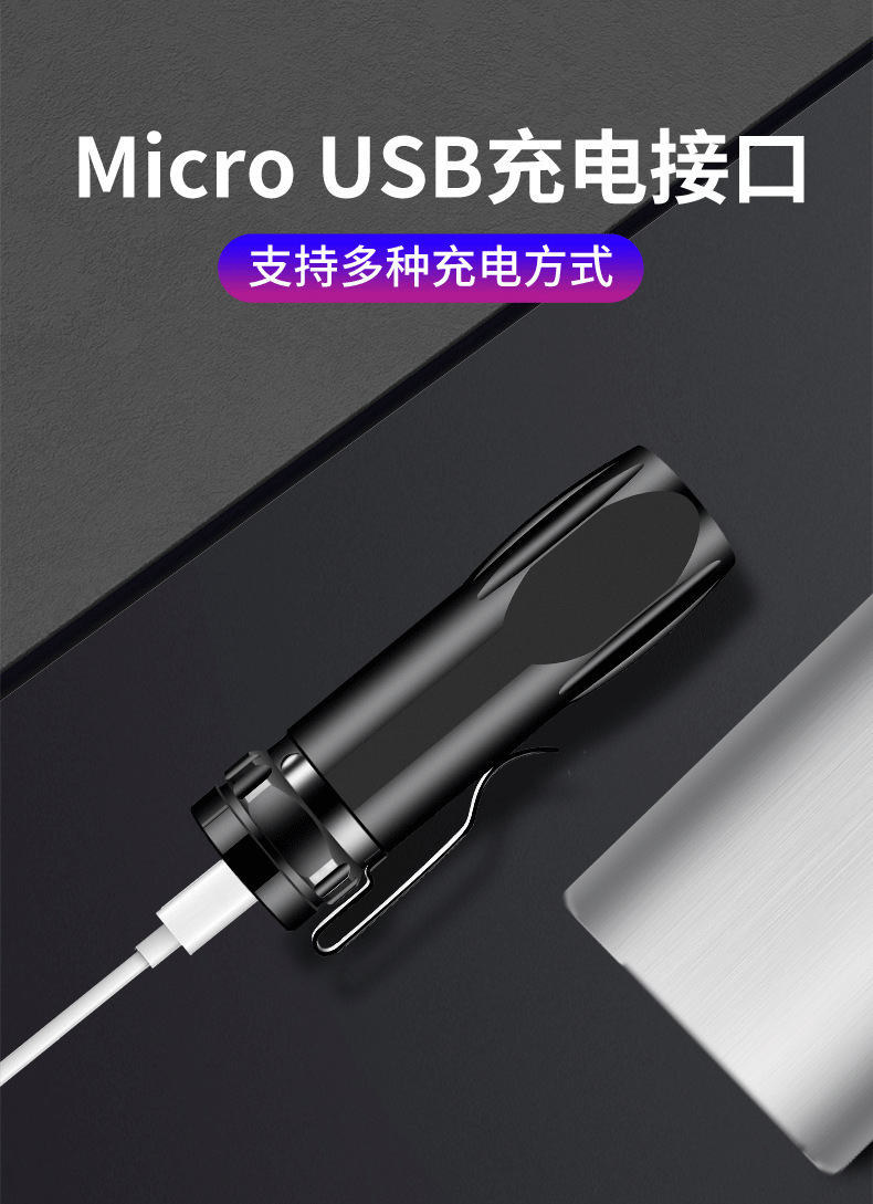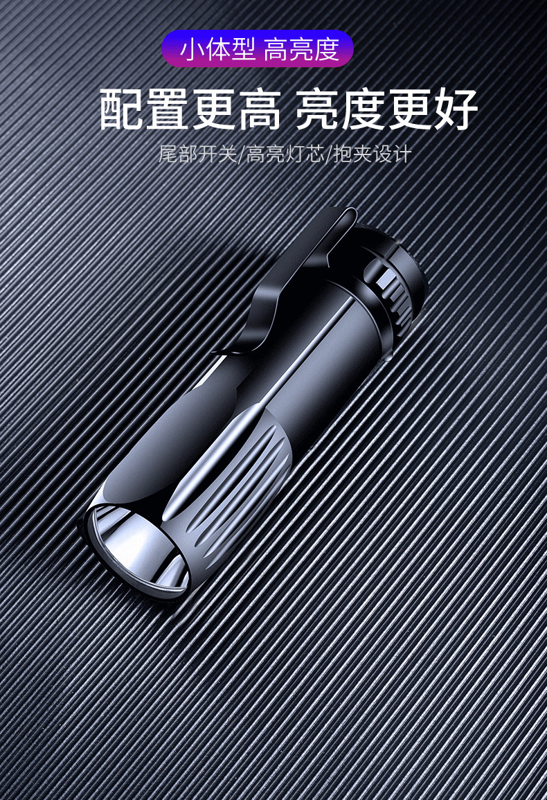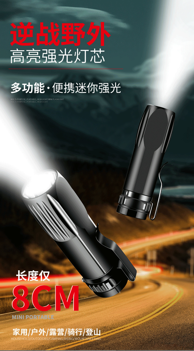 LED迷你小手电筒强光可充电多功能远射家用户外便携学生带笔夹
