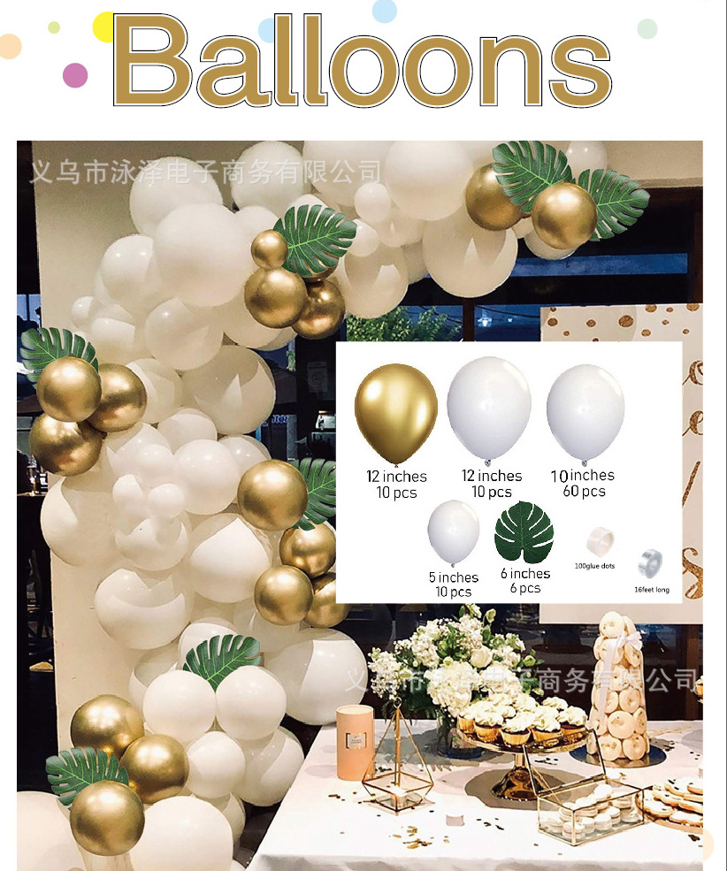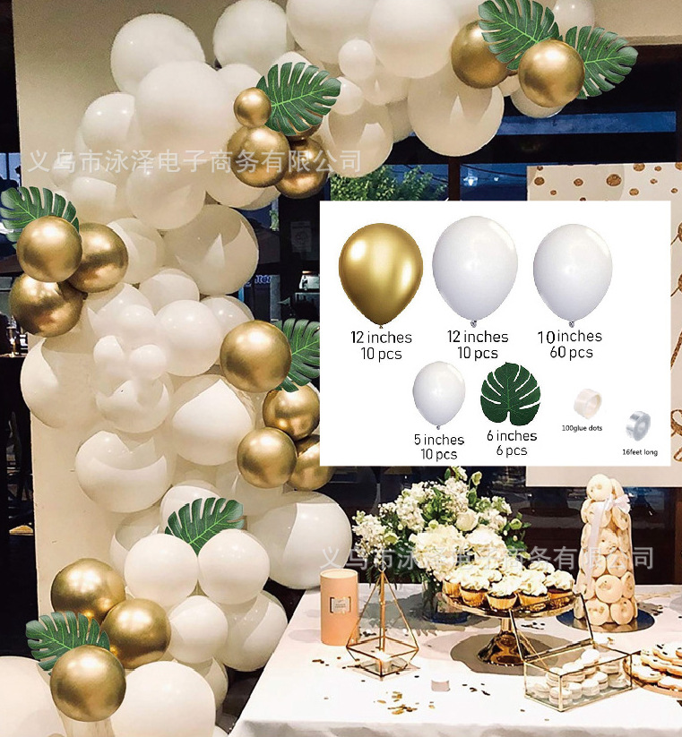 跨境经典白金气球链接套装 生日宝宝派对 婚礼装饰布置乳胶气球 English | 投诉