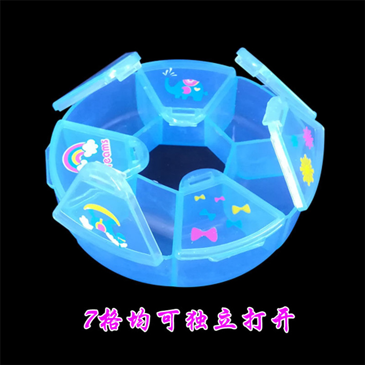 圆形一周7天随身便携药盒分格塑料盒大格卡通圆形7格随收纳盒 投诉