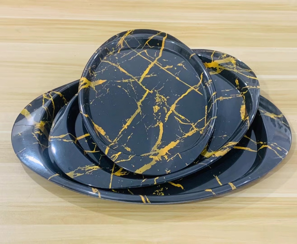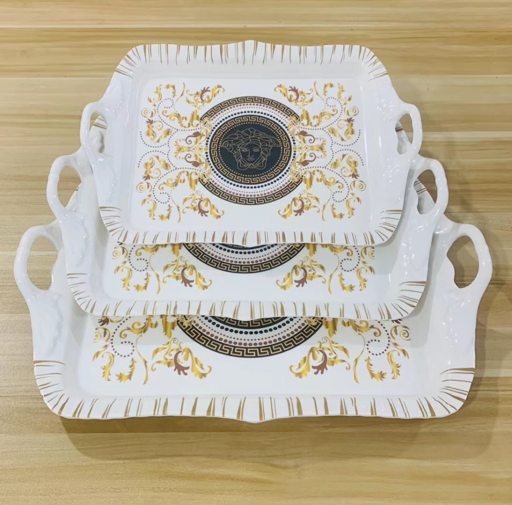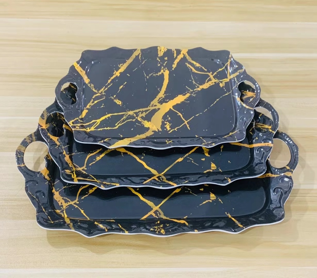 镀金印花密胺餐具批发火锅菜盘长方形塑料仿瓷餐盘烧烤小吃碟新款
