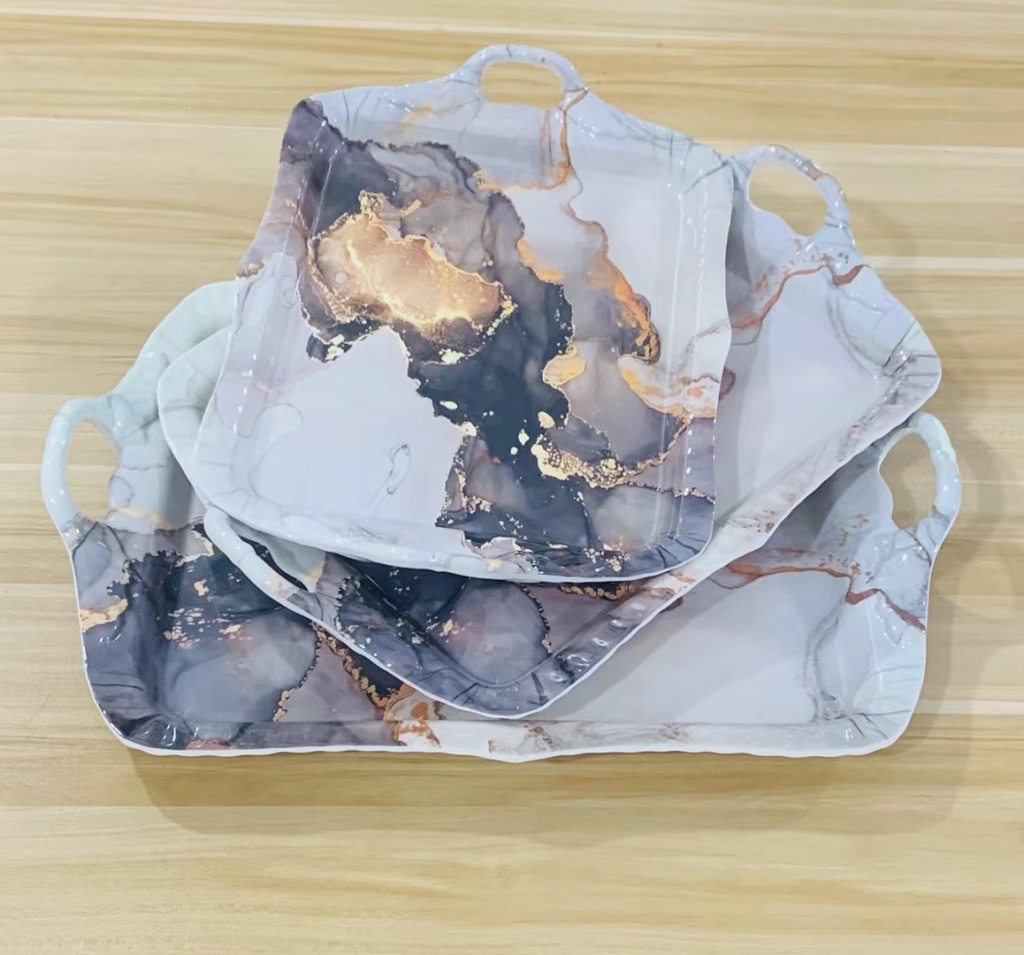 镀金印花密胺餐具批发火锅菜盘长方形塑料仿瓷餐盘烧烤小吃碟新款 投诉