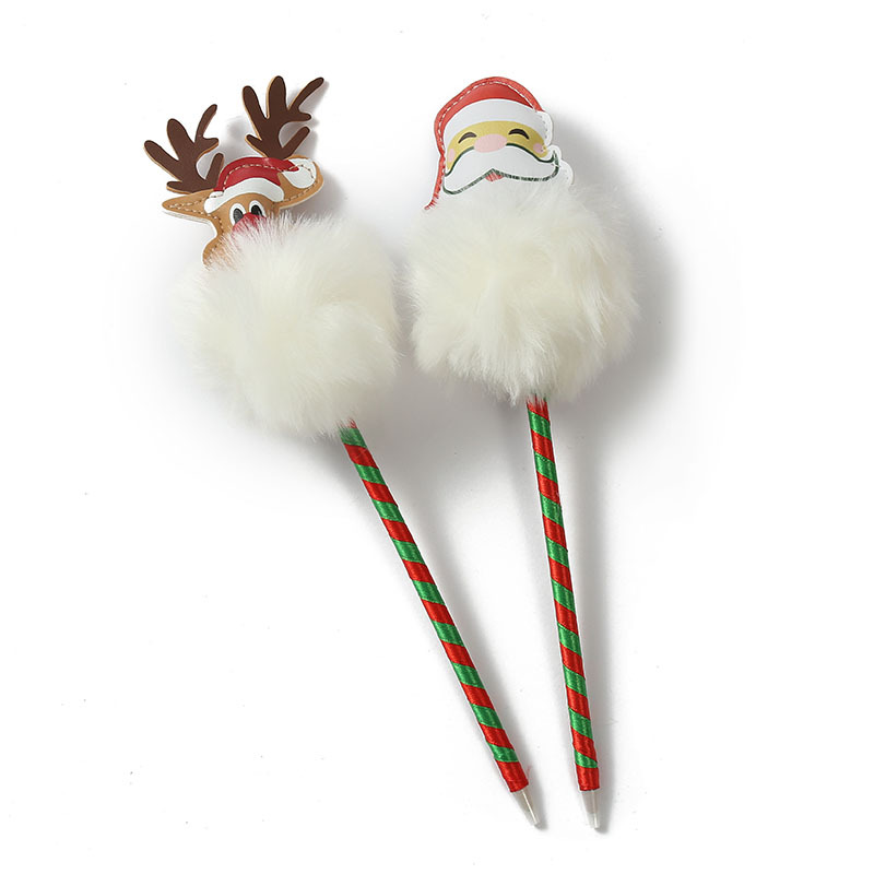 创意文具批发麋鹿圣诞毛球人造毛挂件中性笔 签字笔水笔 厂家直供 English | 投诉