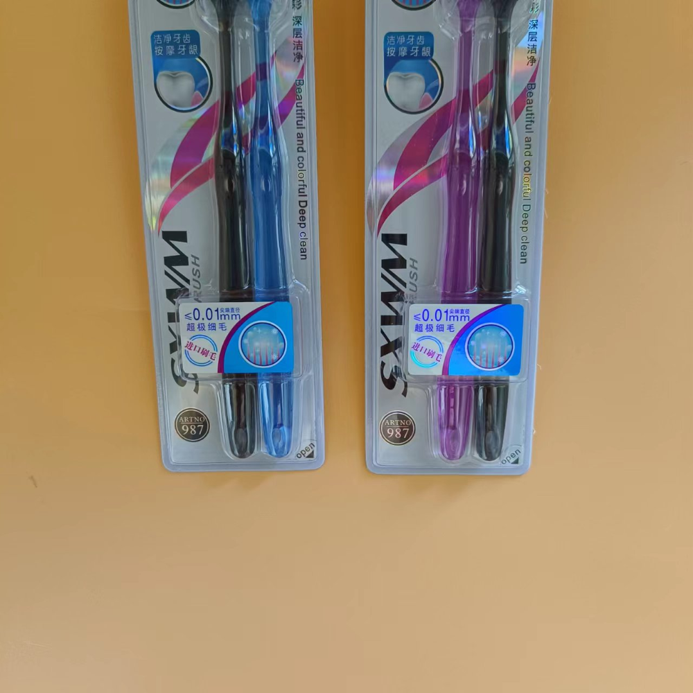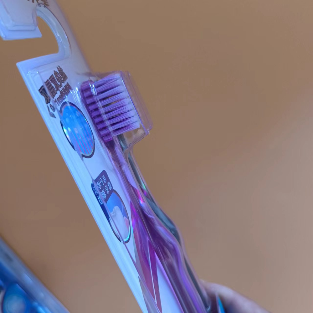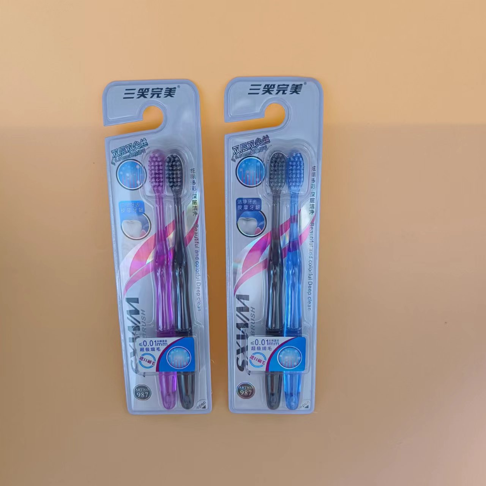 三笑完美987 12对/盒 144对/箱 双层双尖丝:刷毛绚丽多彩,更细更软,能深入齿缝清洁,轻松去除牙渍,按摩牙龈。 精巧刷头 纤细长颈:精巧刷头设计,容易深入口腔的每一个角落。纤细长颈设计,轻松进入口腔,易于清洁牙齿的各个面。 透明水晶刷柄:圆滚滚的精巧透明刷柄设计,舒适易握,使您的刷牙时享受最贴心的呵护。