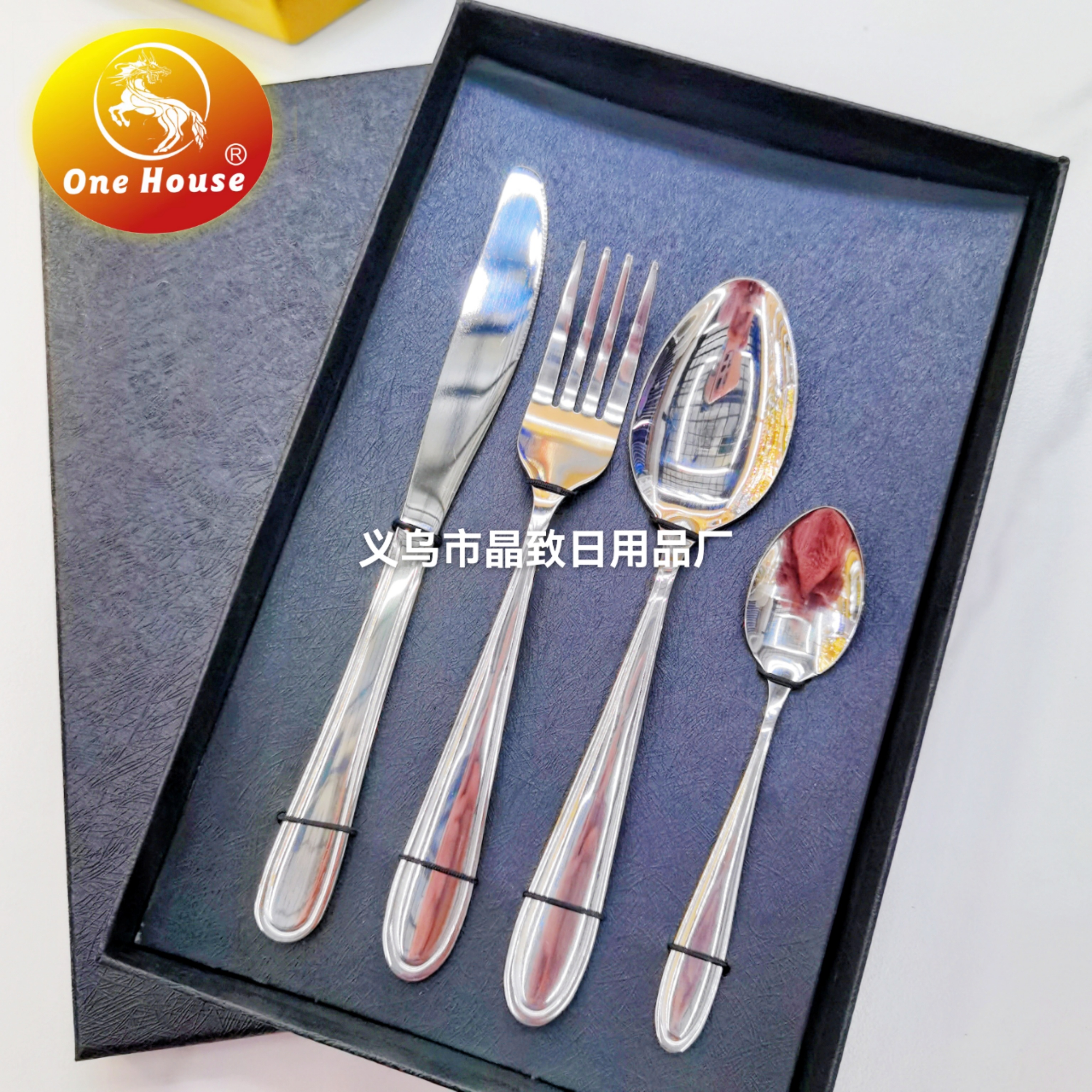 仿木夹柄/黑白色大理石夹柄/不锈钢柄刀叉勺黑盒装 投诉