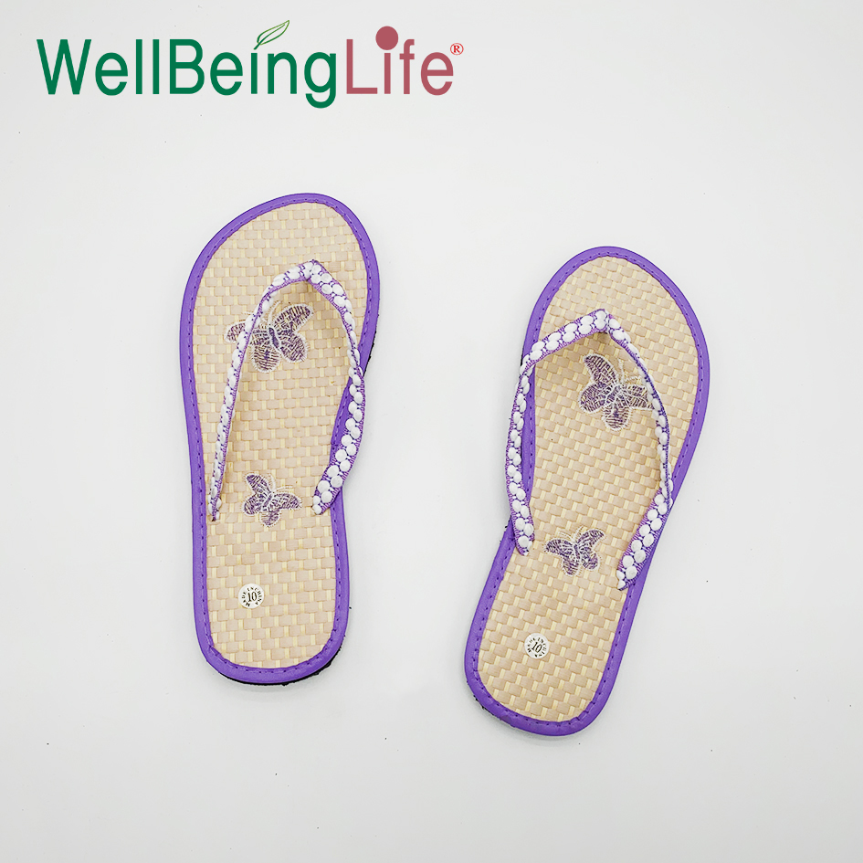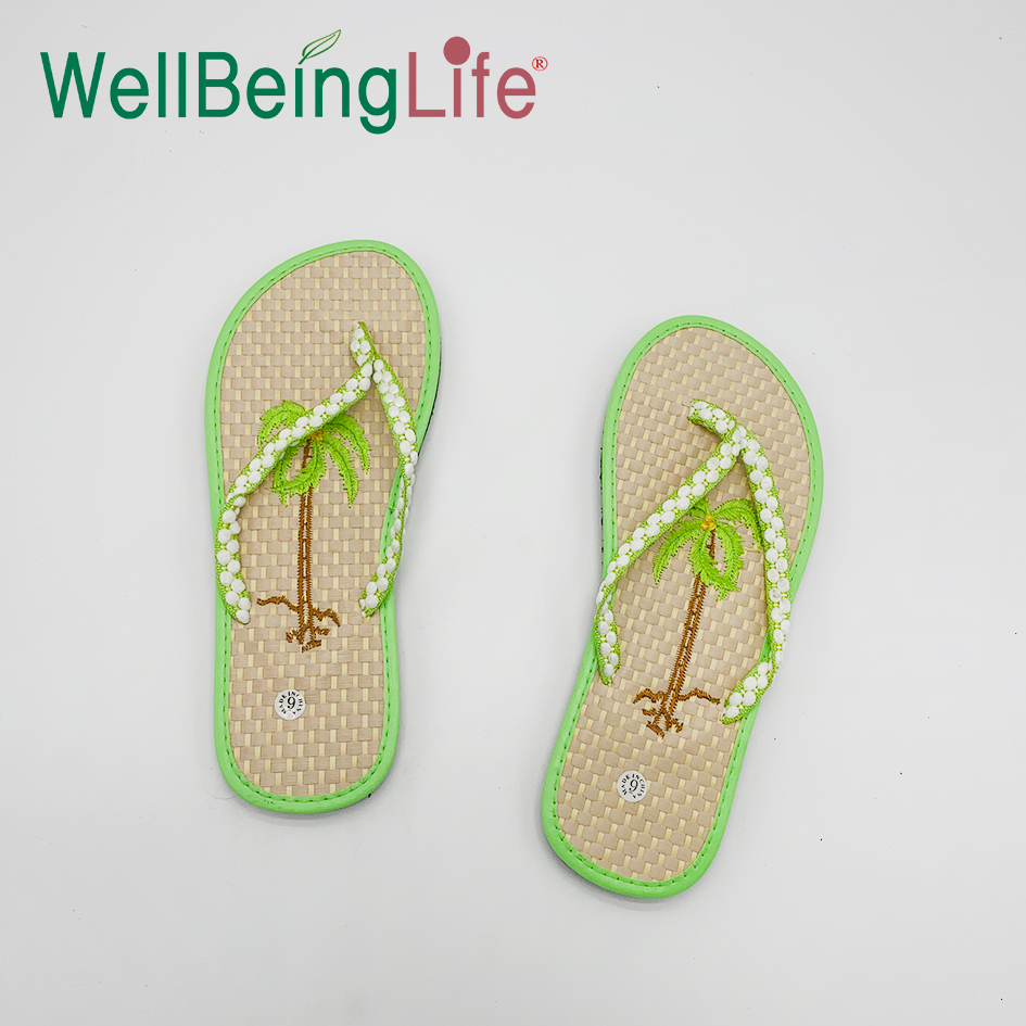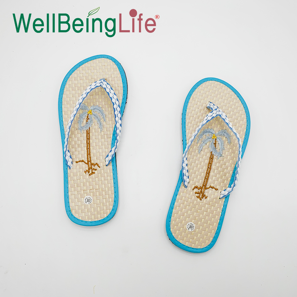 新款亮色草席人字拖鞋 女夏平底外传夹脚凉拖舒适刺绣蝴蝶 椰子树 English | 投诉