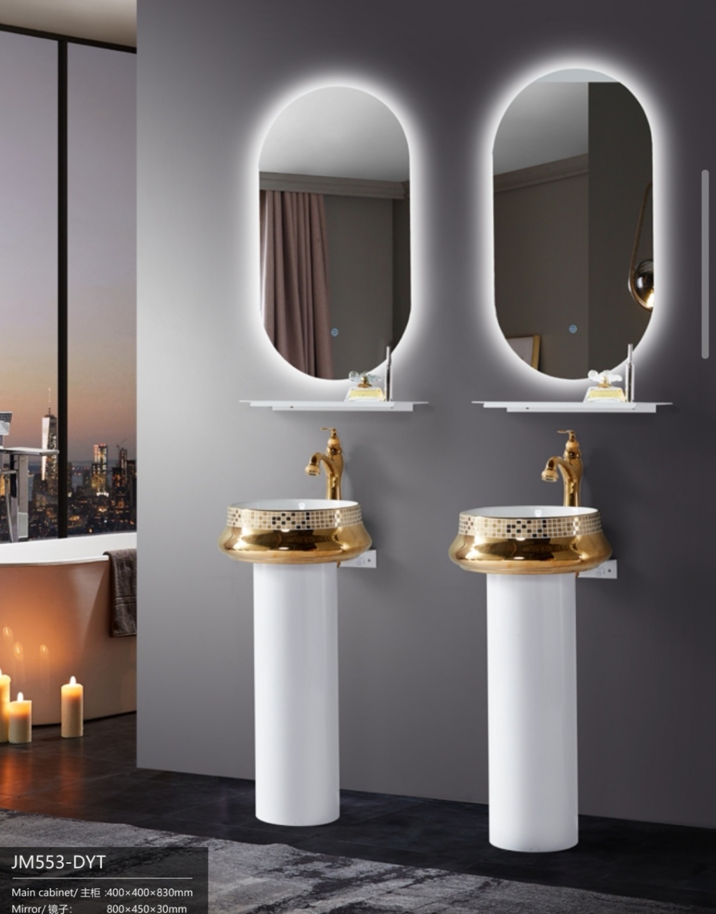 出口沙特阿拉伯浴室柜不锈钢树脂陶瓷免漆木浴室柜双盆浴柜玻璃盆