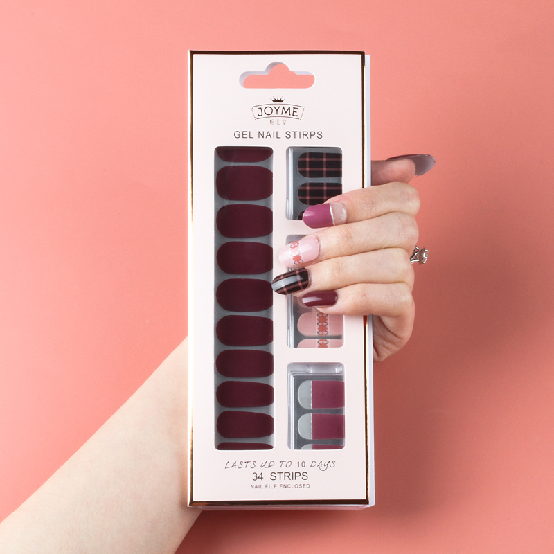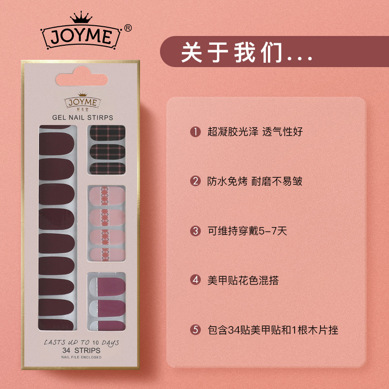 现货热销新款34贴美甲贴纸井字格防水免考柔软服帖不起翘指甲贴片 投诉