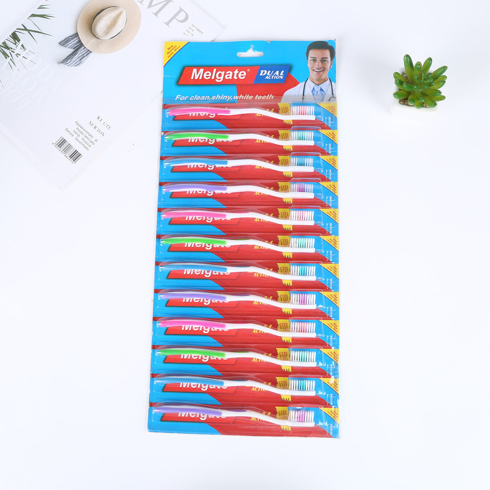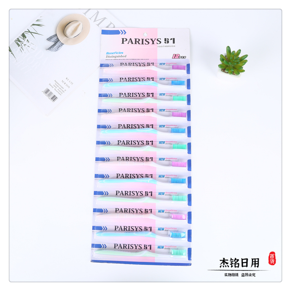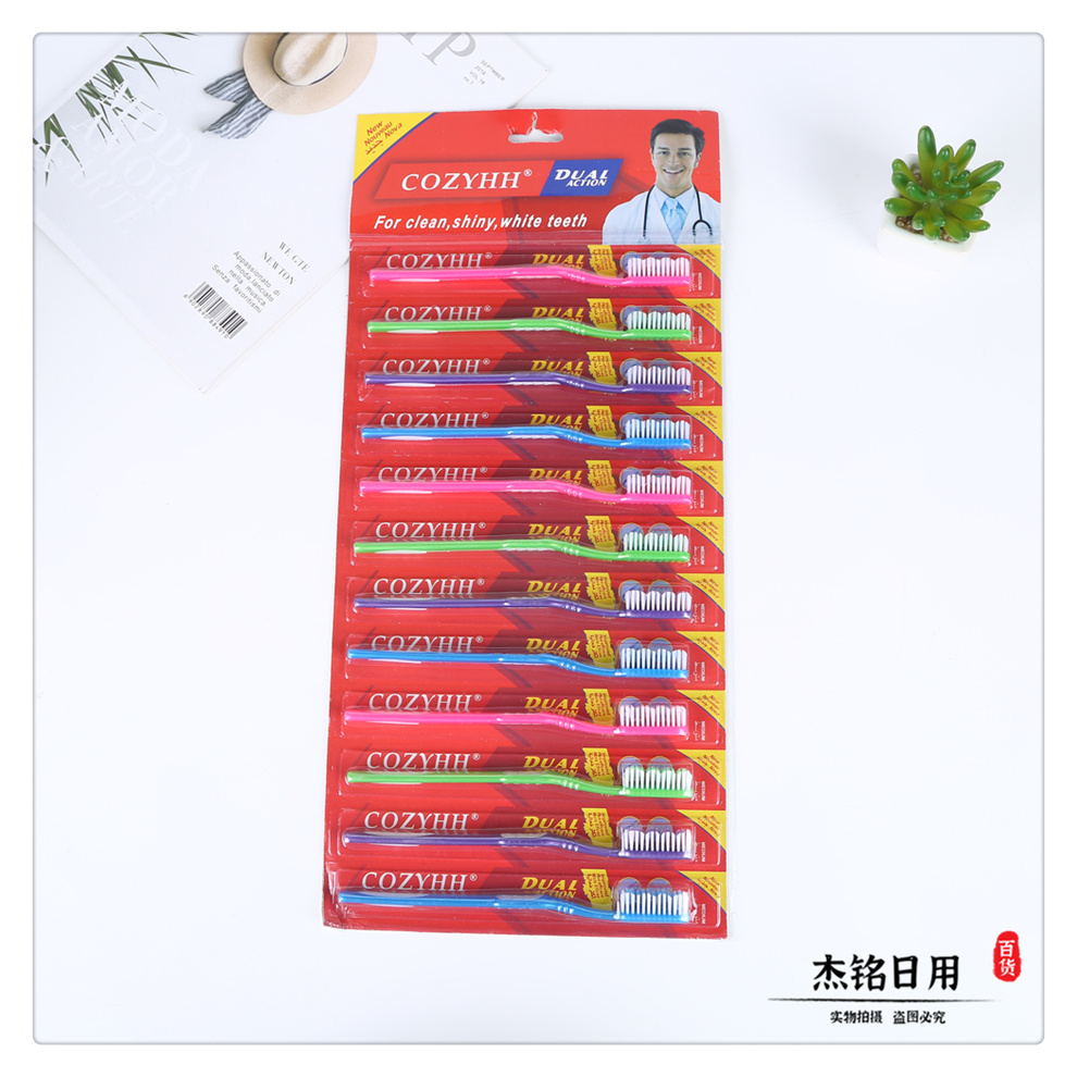 产品名称:十二支一挂规格彩色简装外贸成人牙刷 深入清洁牙缝有效清洁牙齿