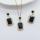 新款祖母绿黑色红色水晶锆石耳钉吊坠复古高级耳钉气质锁骨链套装