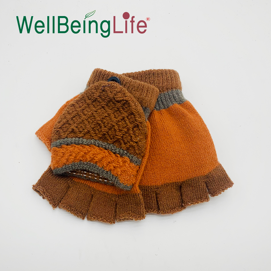 半指翻盖提花手套针织写字工作防寒毛线保暖儿童男孩手套