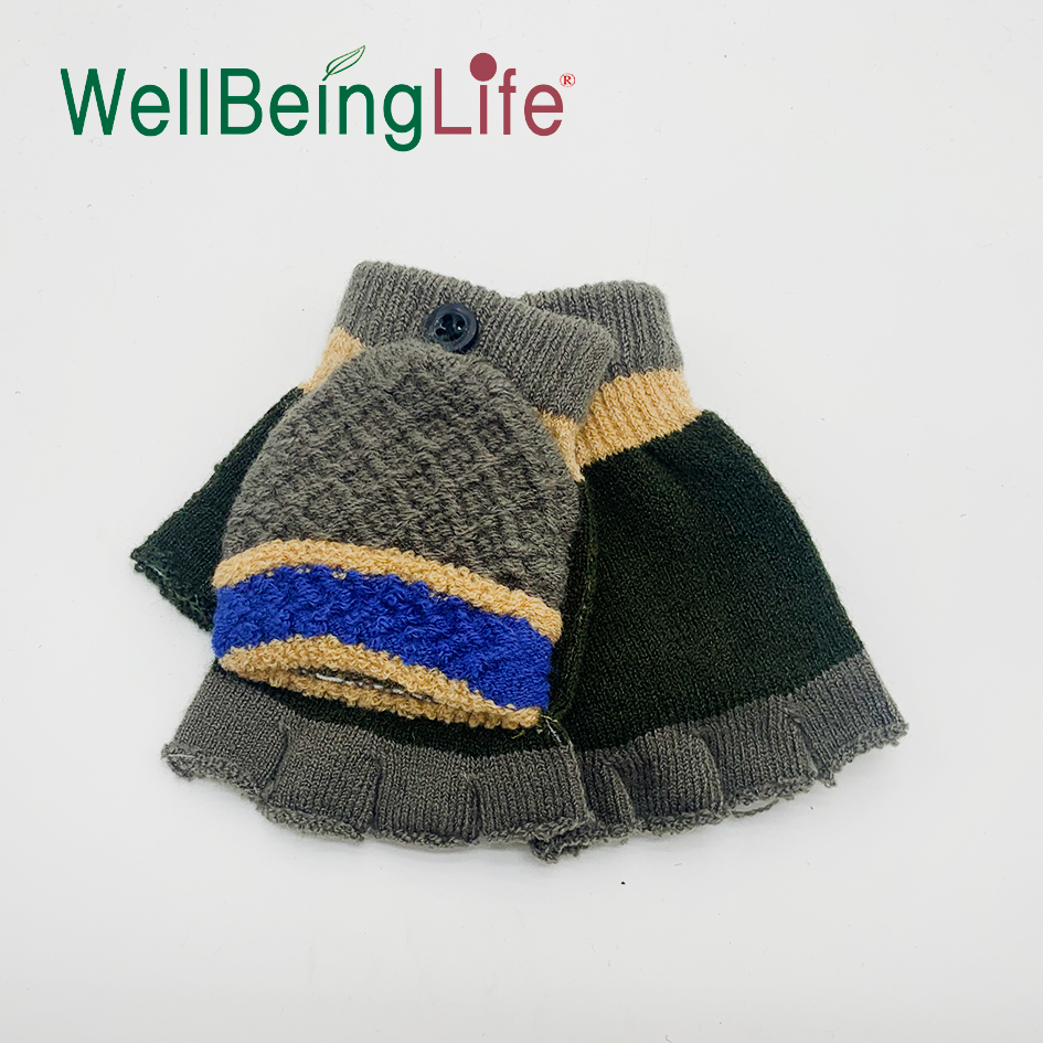 半指翻盖提花手套针织写字工作防寒毛线保暖儿童男孩手套 English | 投诉
