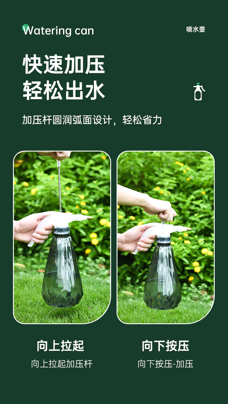 佰世园艺1.5L浇花喷壶 园艺家用洒水壶气压式喷雾器小型压力喷壶 投诉