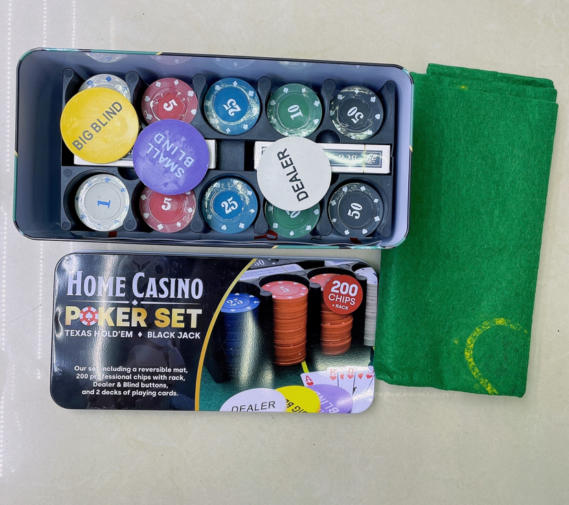 新品上市  筹码200pc矮高方  扑克桌布筹码精美铁盒套装