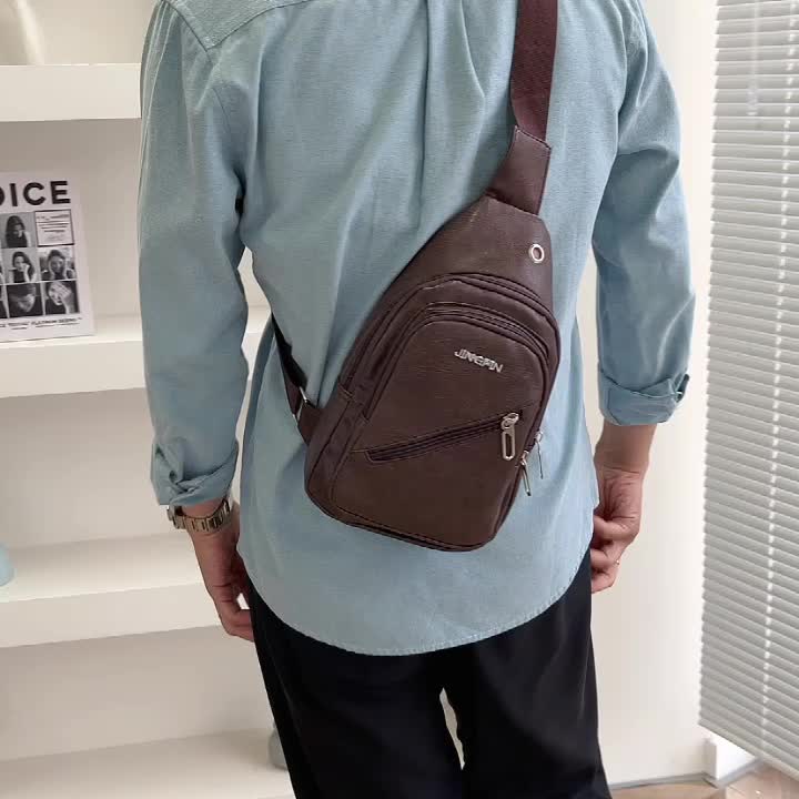 简约男士胸包休闲时尚单肩包韩版男包胸前背包斜挎包潮流个性挎包
