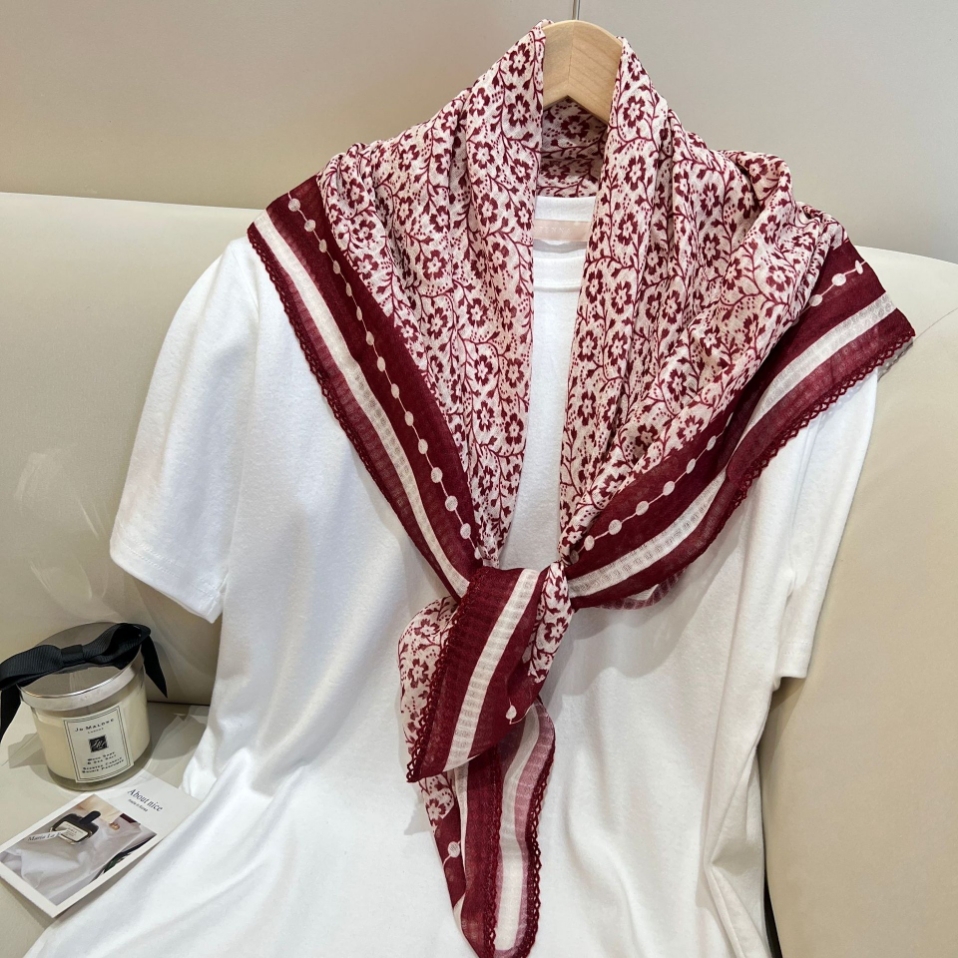 韩国 风新款蕾丝花边90cm棉麻大方巾女复古装饰大披肩头巾围巾 English | 投诉