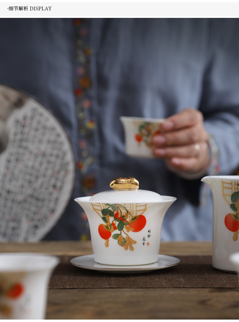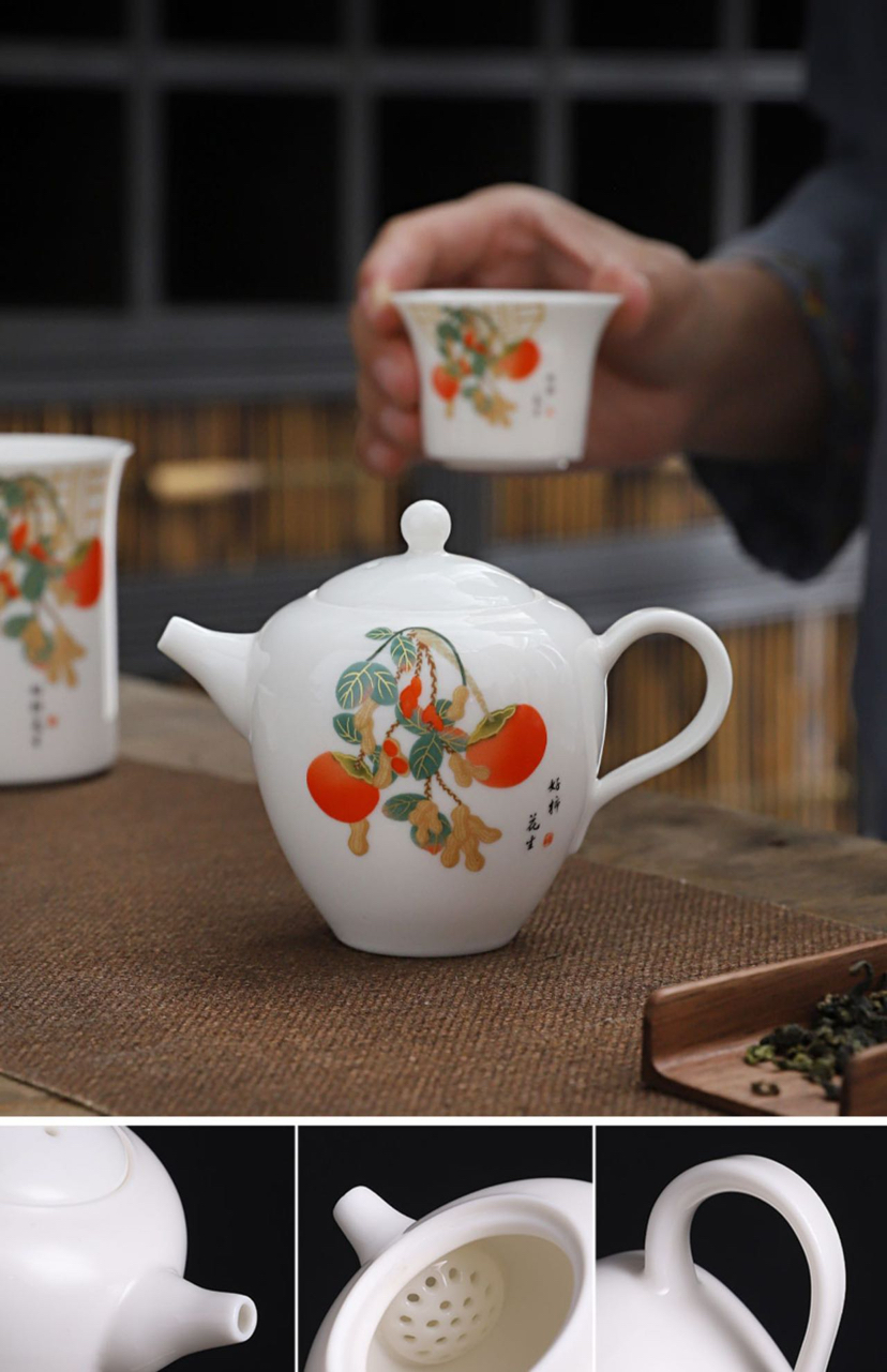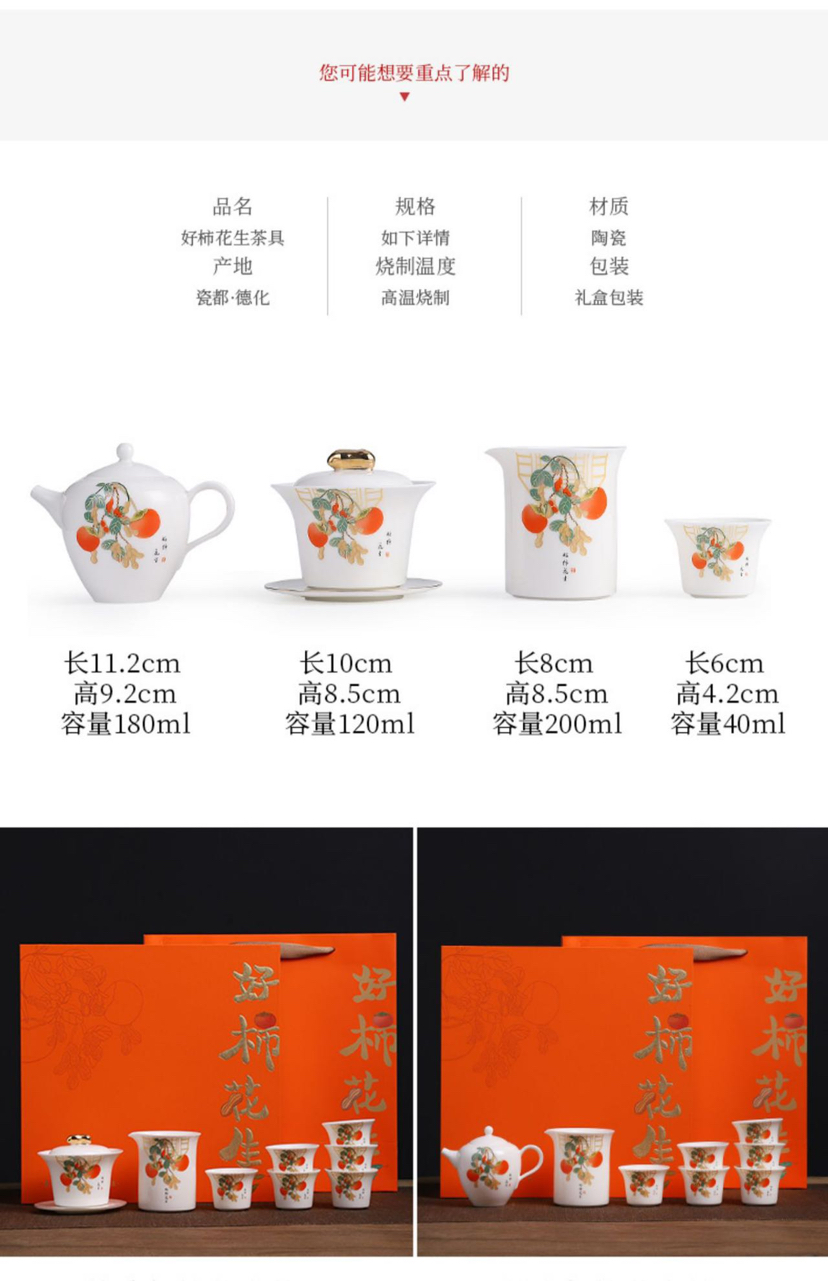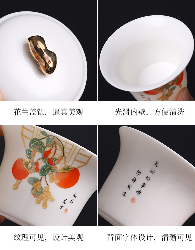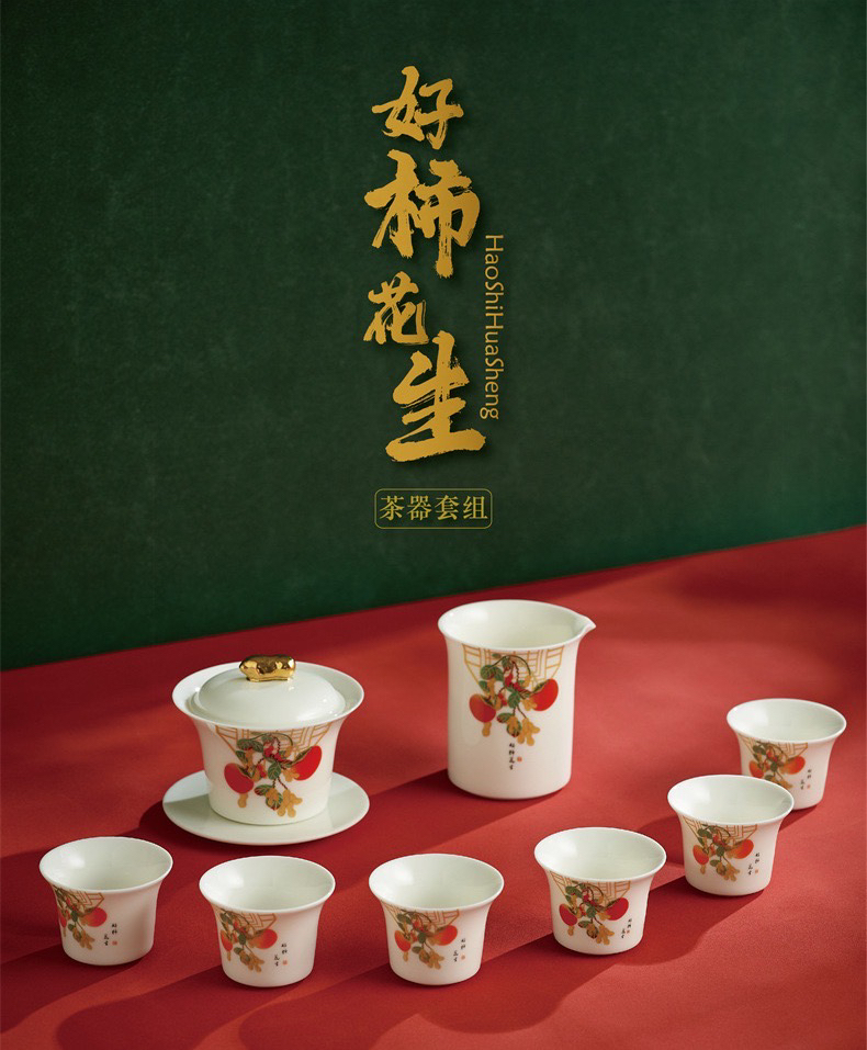 白居室好柿花生茶具套装家用客厅小套创意陶瓷中式会客白瓷礼盒装