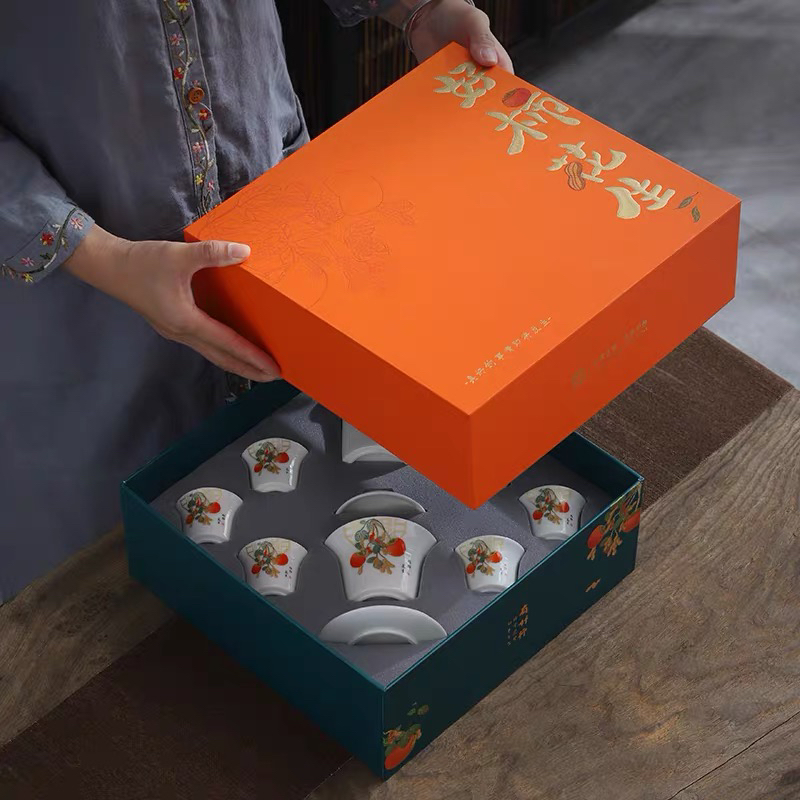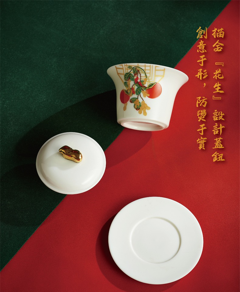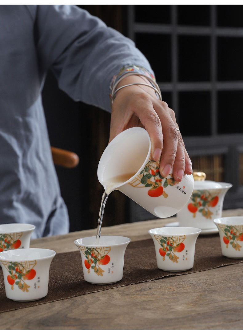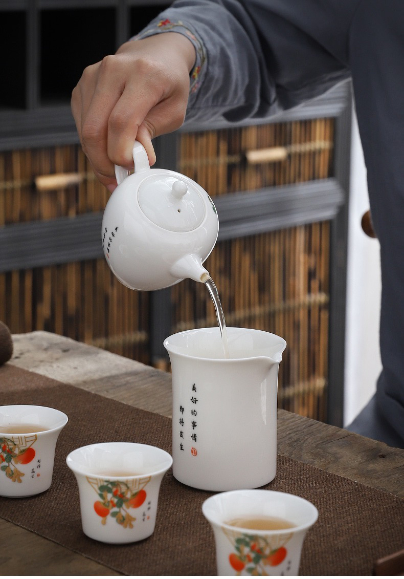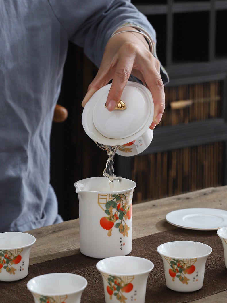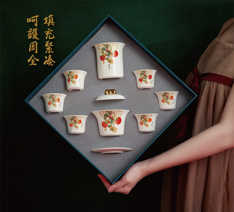 白居室好柿花生茶具套装家用客厅小套创意陶瓷中式会客白瓷礼盒装