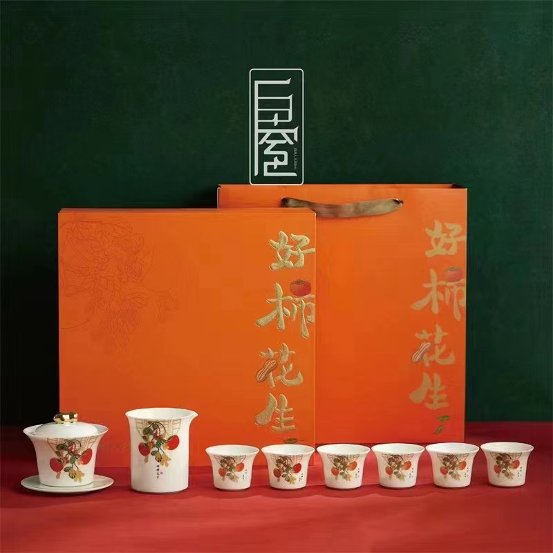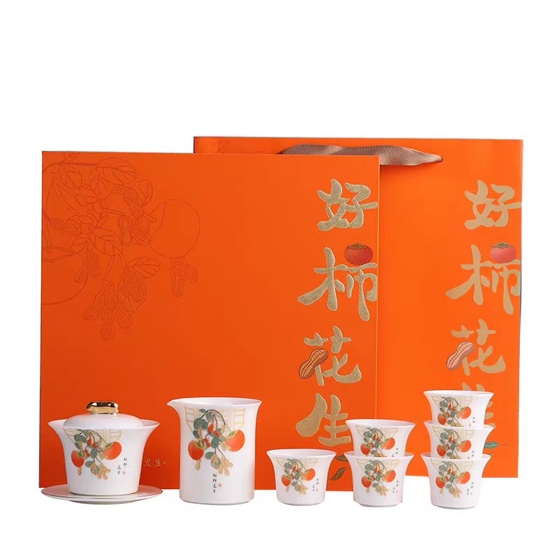 好柿发生国庆礼品白居室好柿花生茶具套装