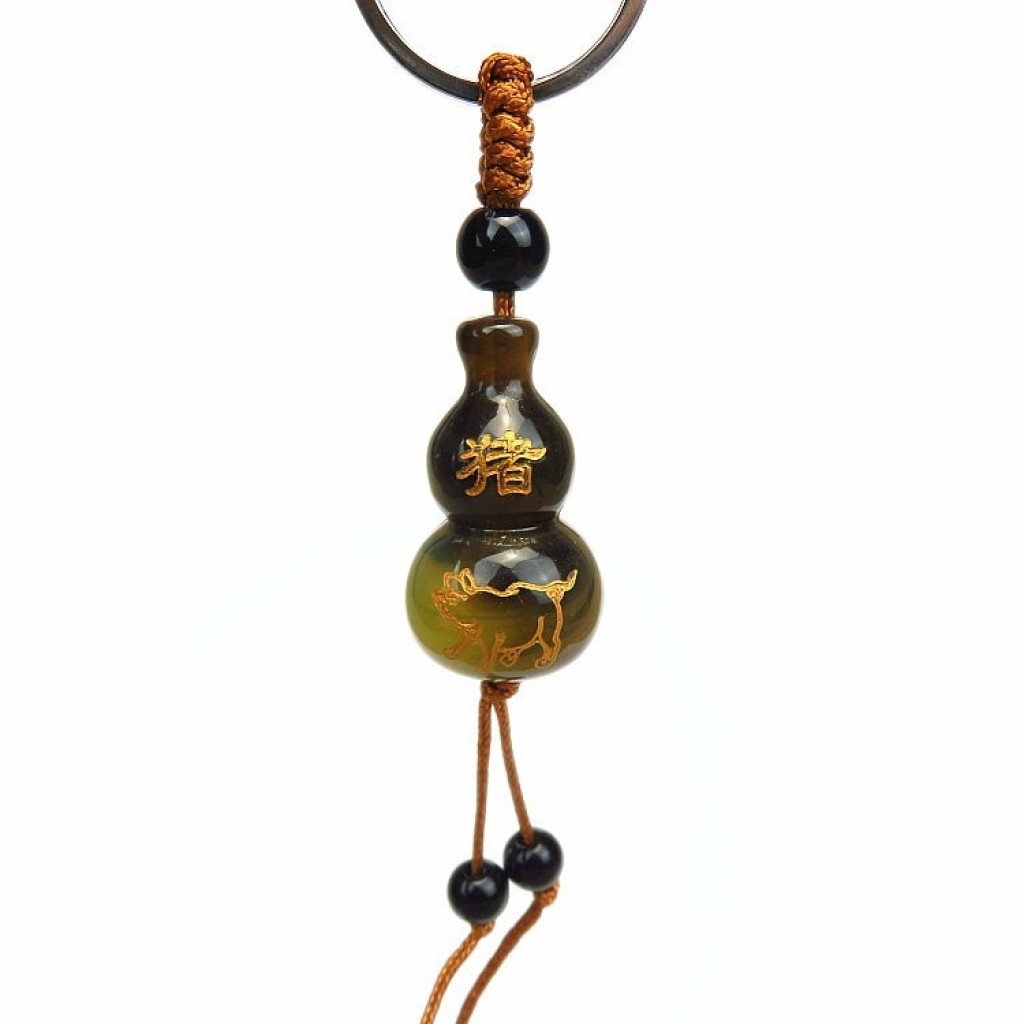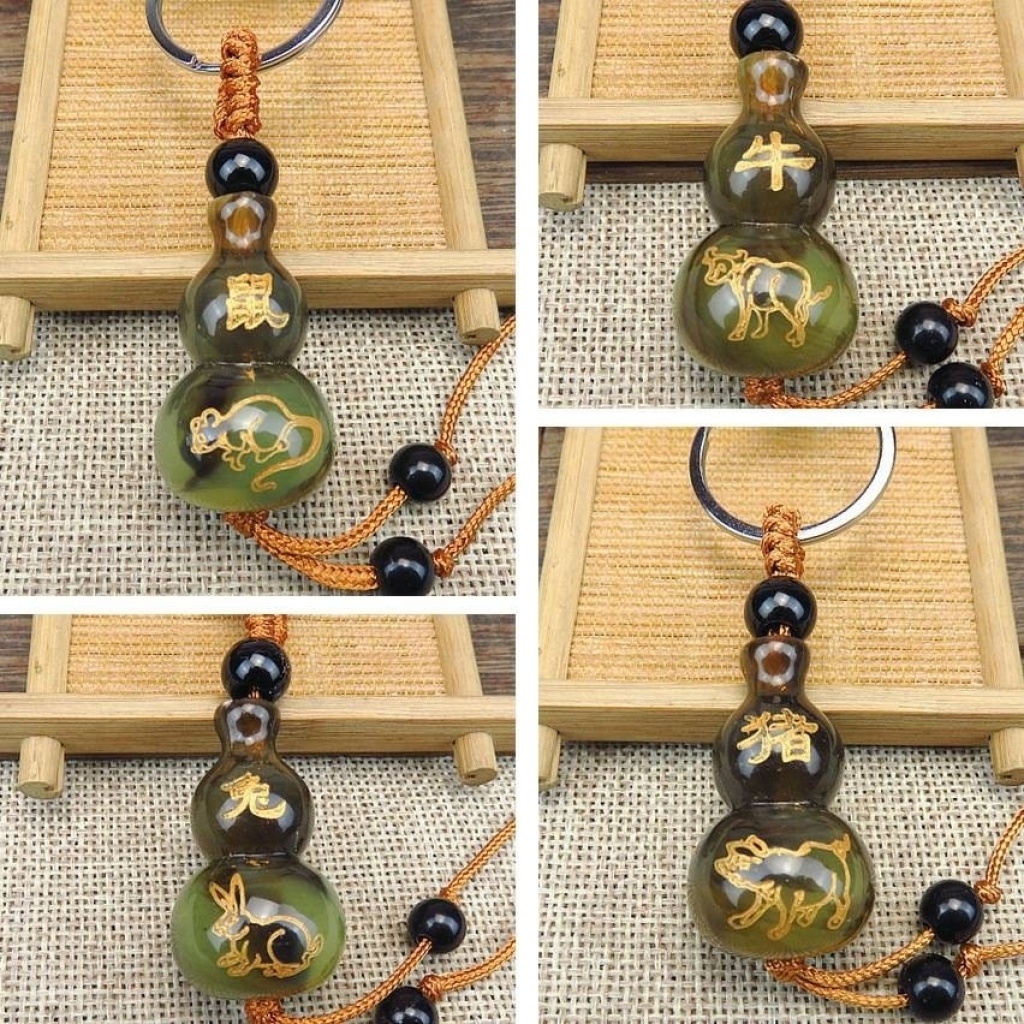 地摊网店热卖烫金刻字十二生肖仿牛角葫芦钥匙扣挂件活动礼品挂饰 投诉