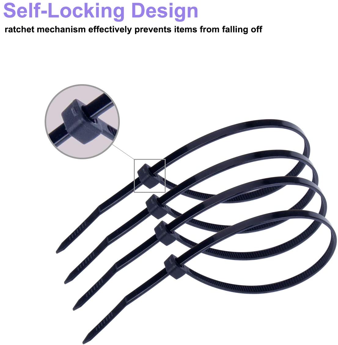 5.扎带采用UL认可之尼龙-66料制成,防火等级94V-2,耐酸、腐蚀、绝缘性良好、不易老化、重量轻、承受力强。操作温度为零下40到90度。综合机械性能远远优于一般工程塑料、是代替铜、不锈钢及其他有色金属的理想材料。
