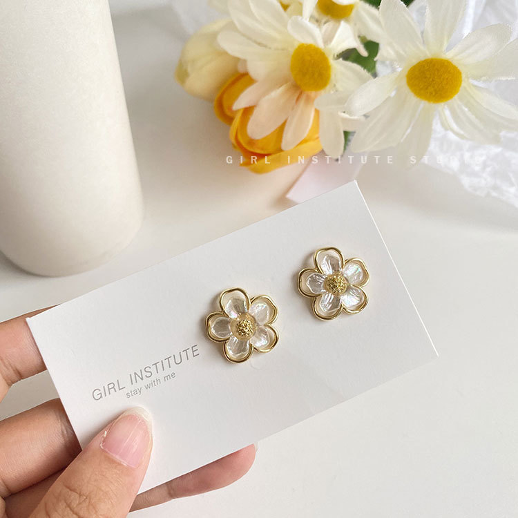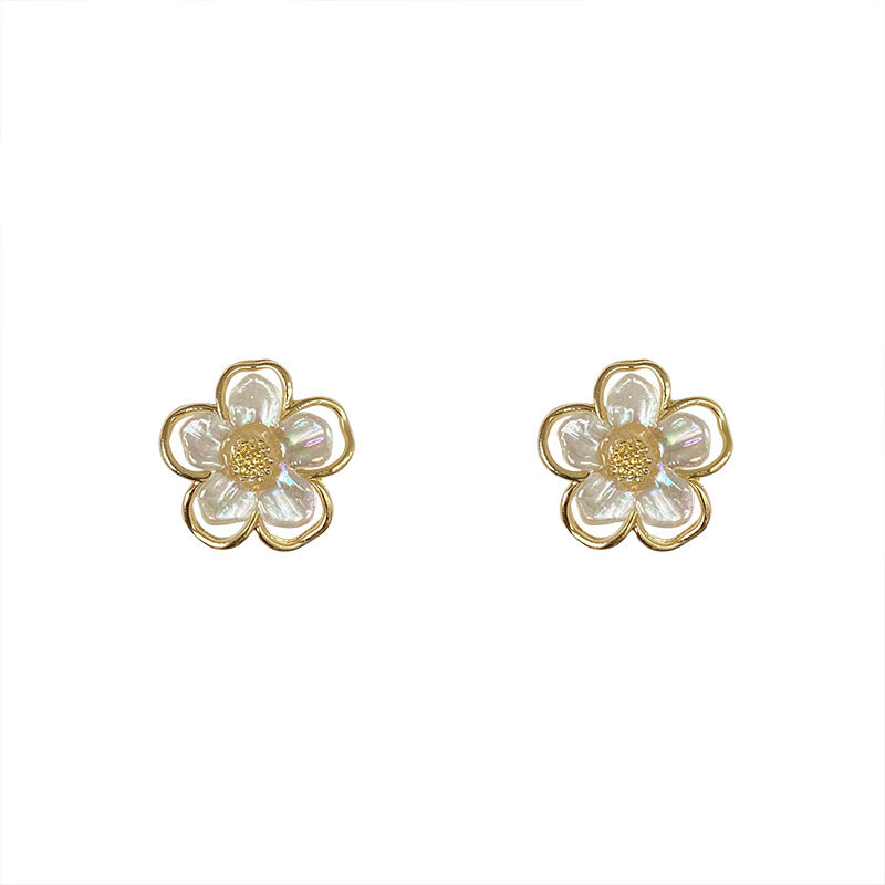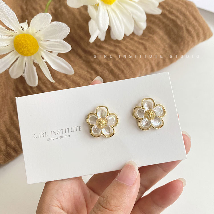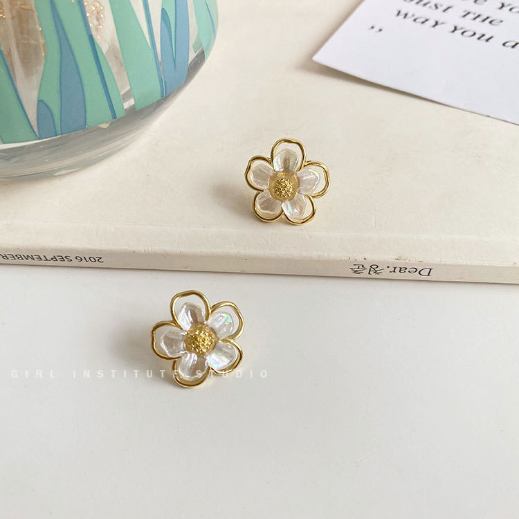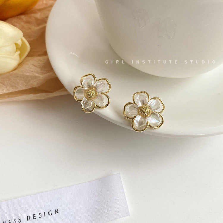 S925银针饰品贝壳花朵耳环气质网红时尚简约花瓣耳环批发定制B154 English | 投诉
