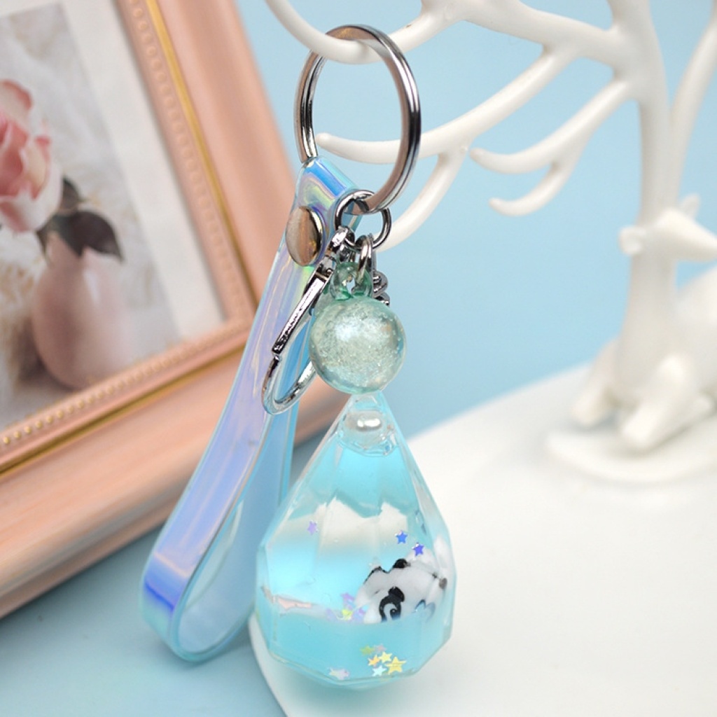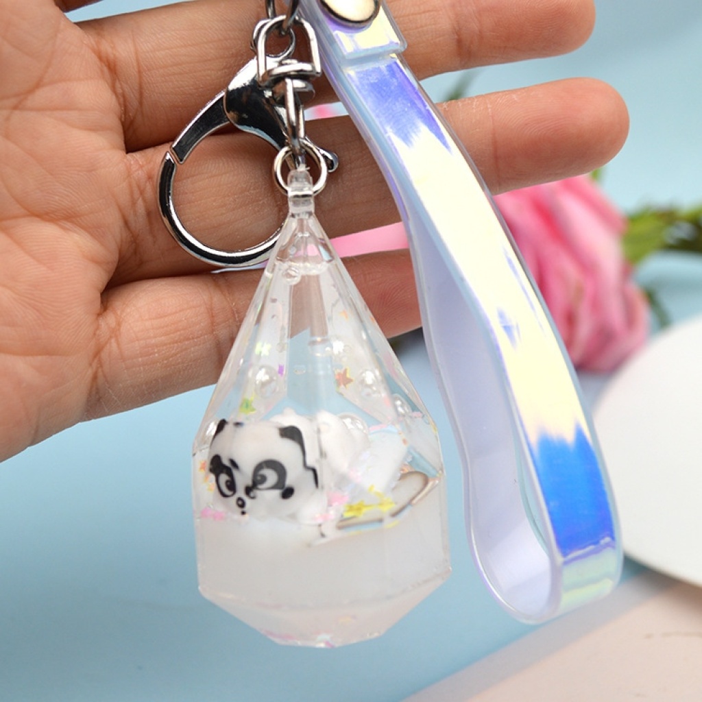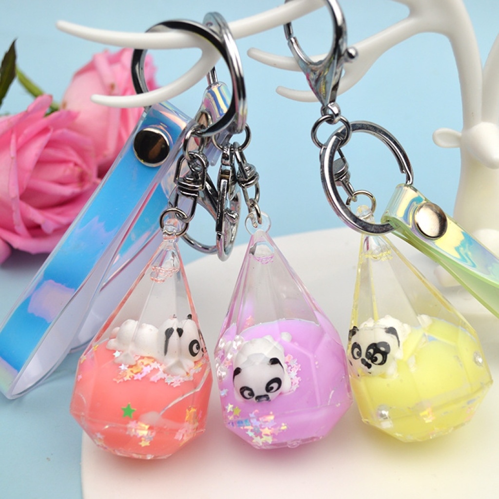 水滴瓶流沙漂浮熊猫公仔钥匙扣挂件钥匙链包包挂件创意小礼品批发