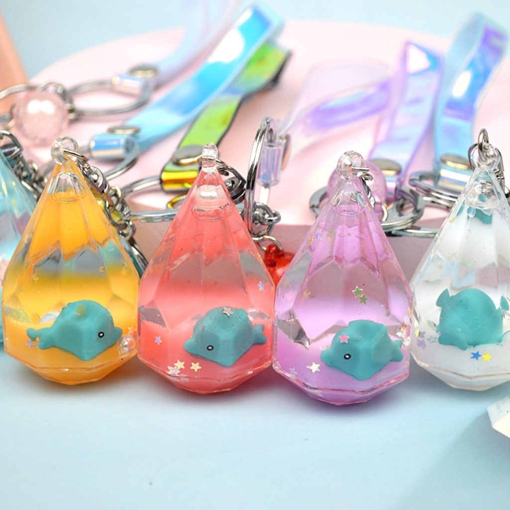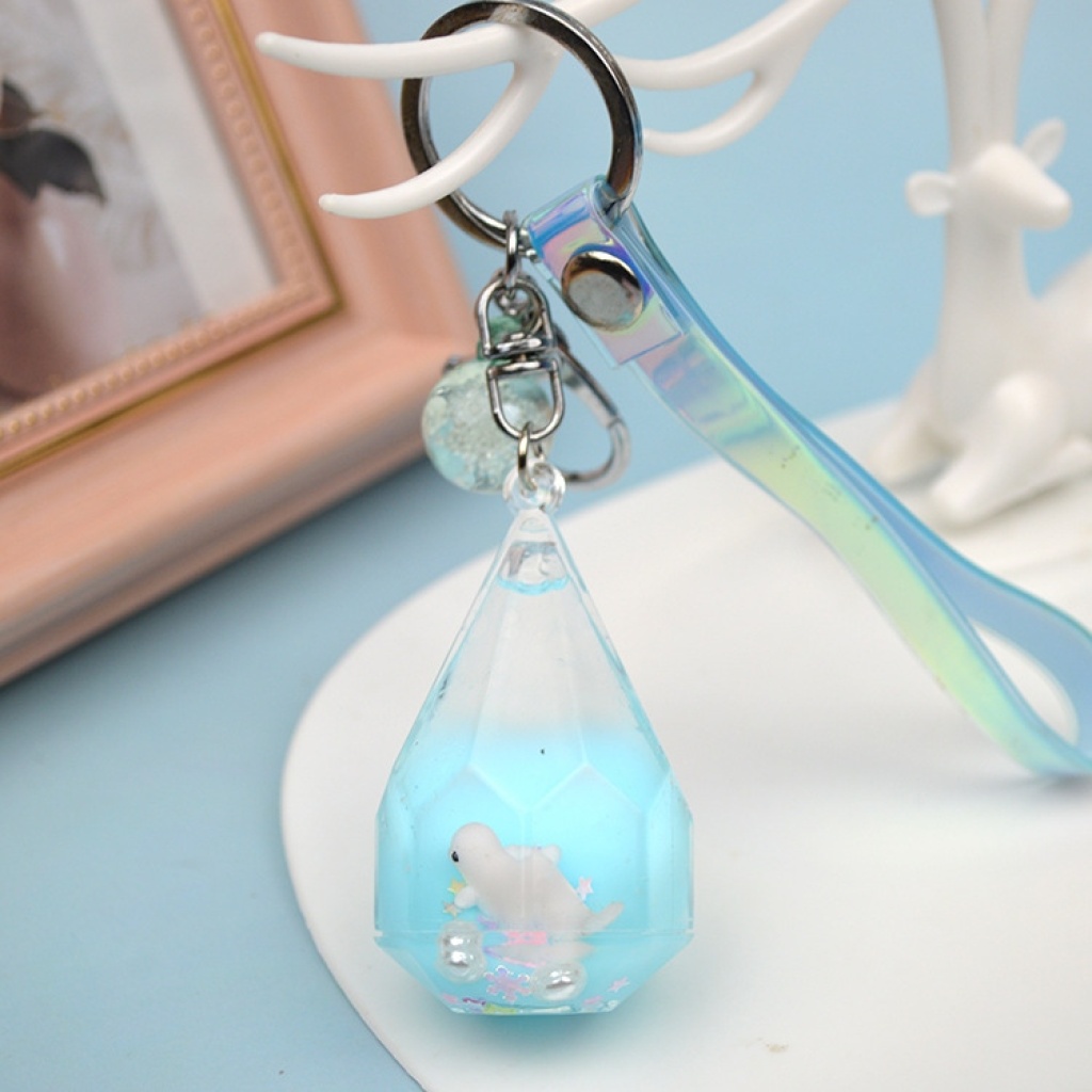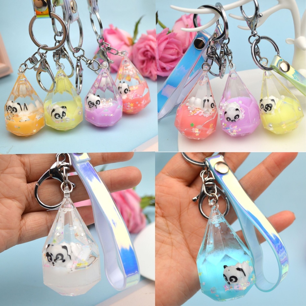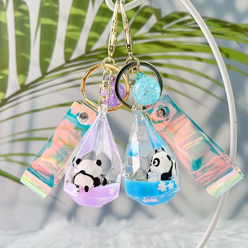 水滴瓶流沙漂浮熊猫公仔钥匙扣挂件钥匙链包包挂件创意小礼品批发