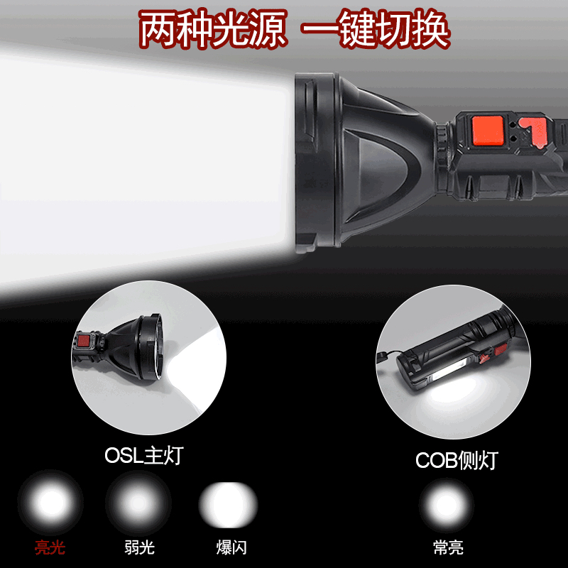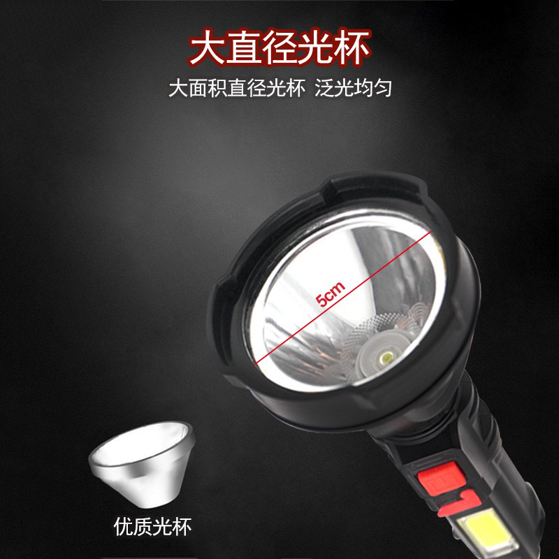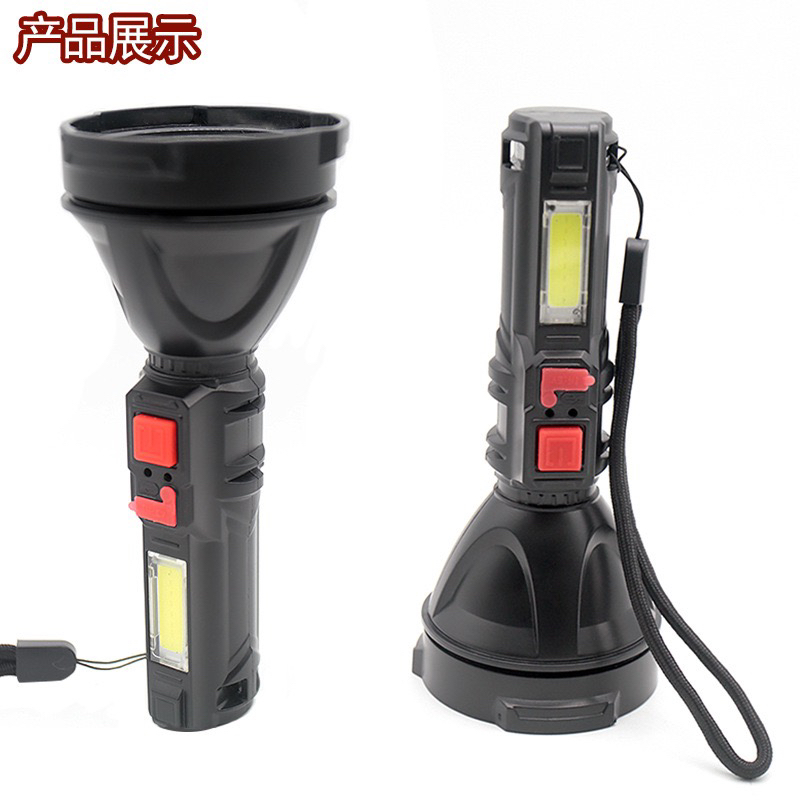 强光手电筒USB可充电式便携超亮远射户外家用led灯带COB侧灯手电