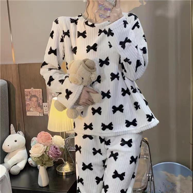 珊瑚绒睡衣女秋冬季长袖网红爆款加厚法兰绒甜美可爱家居休闲套装