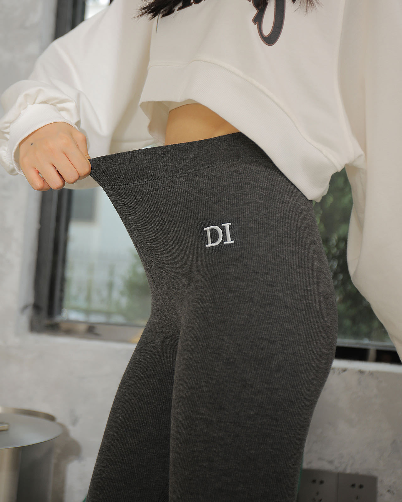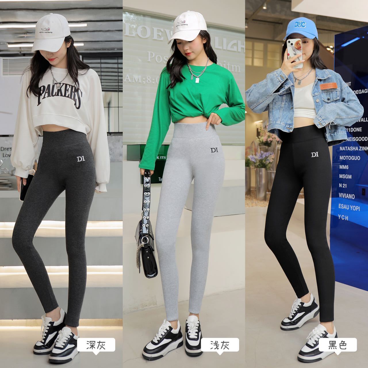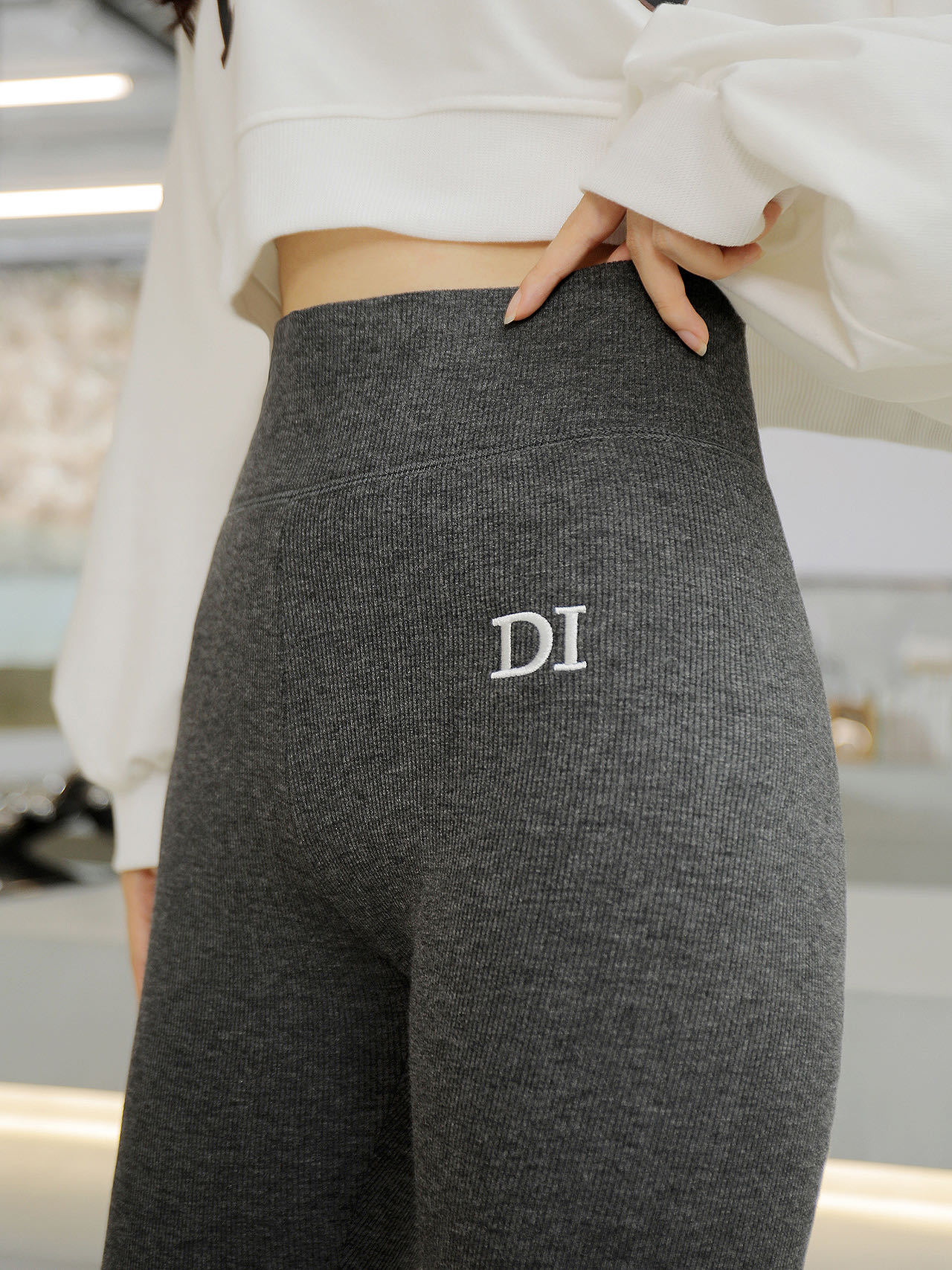 刺绣D1加绒打底裤女高腰收复提臀螺纹显瘦百搭保暖奥利绒打底裤