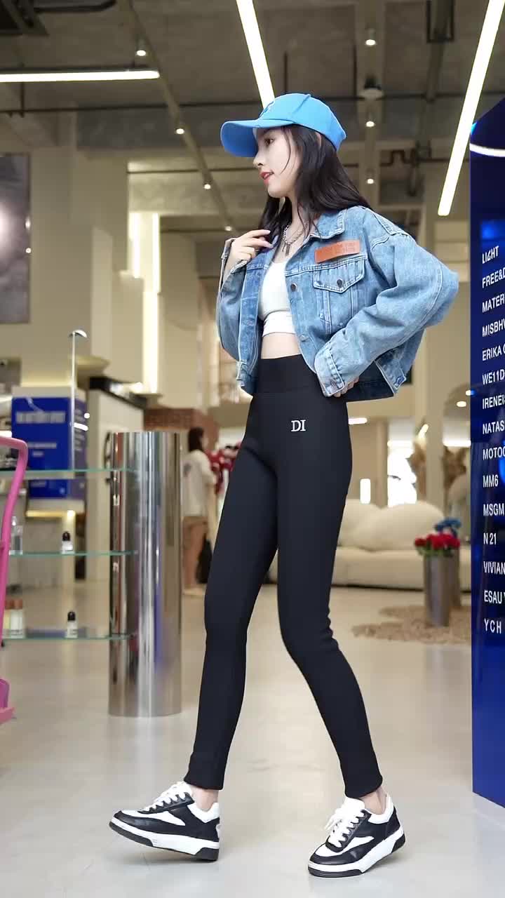 刺绣D1加绒打底裤女高腰收复提臀螺纹显瘦百搭保暖奥利绒打底裤 投诉