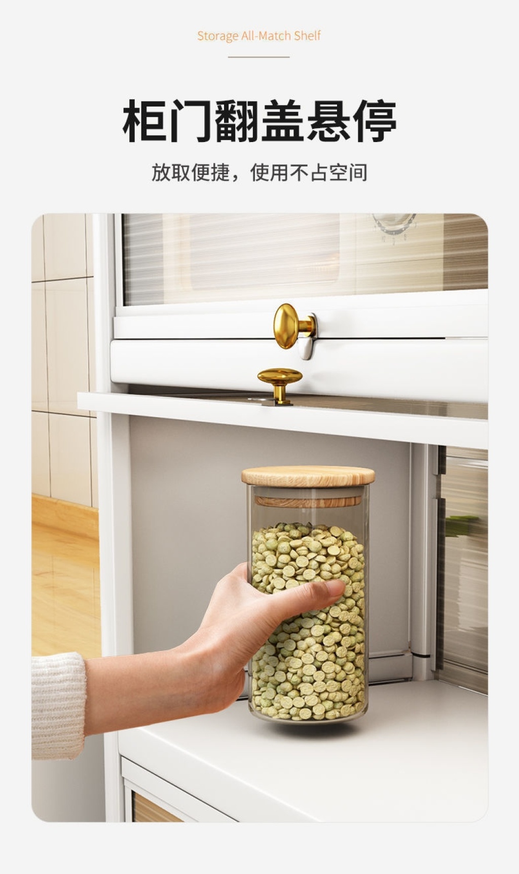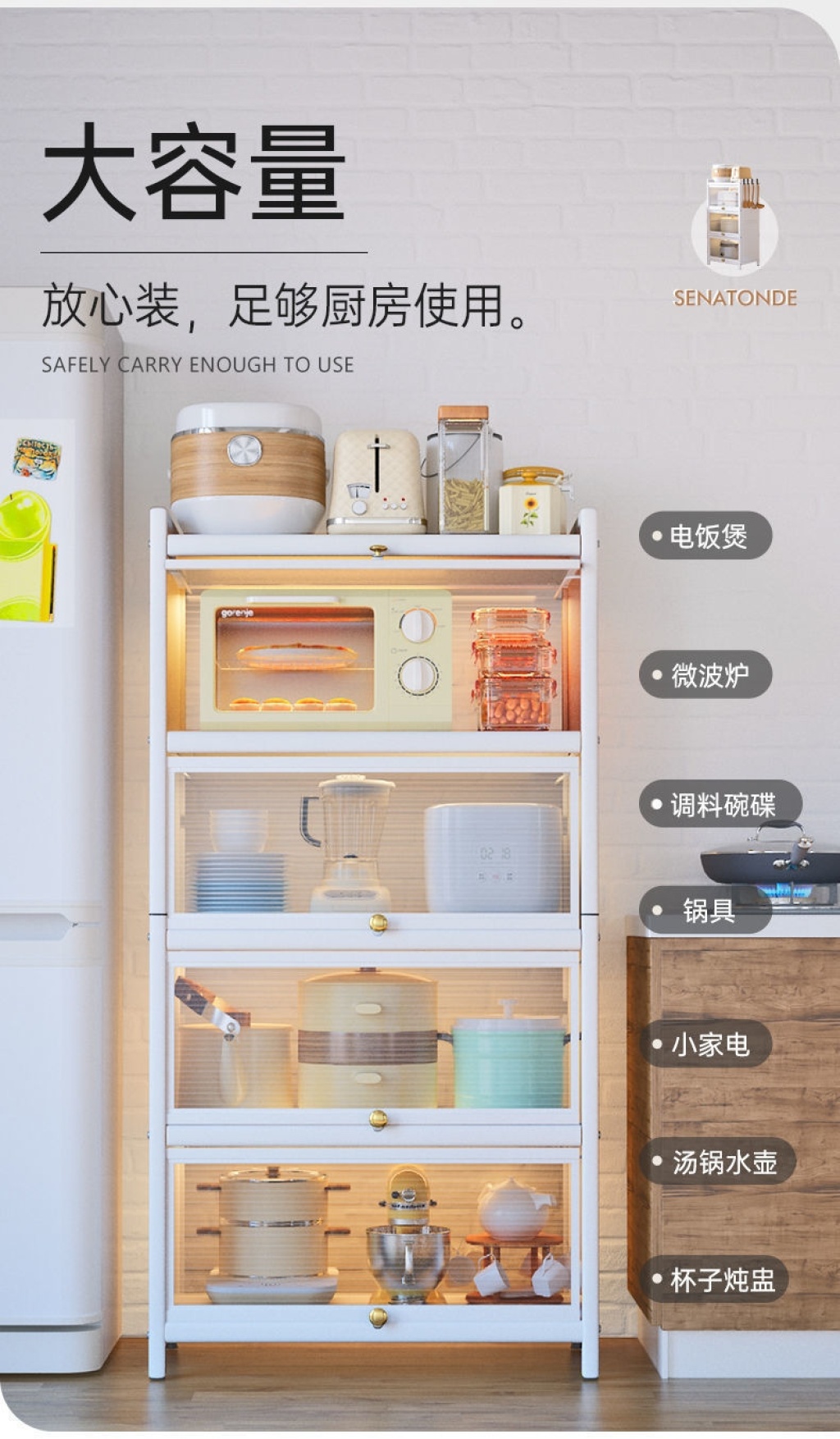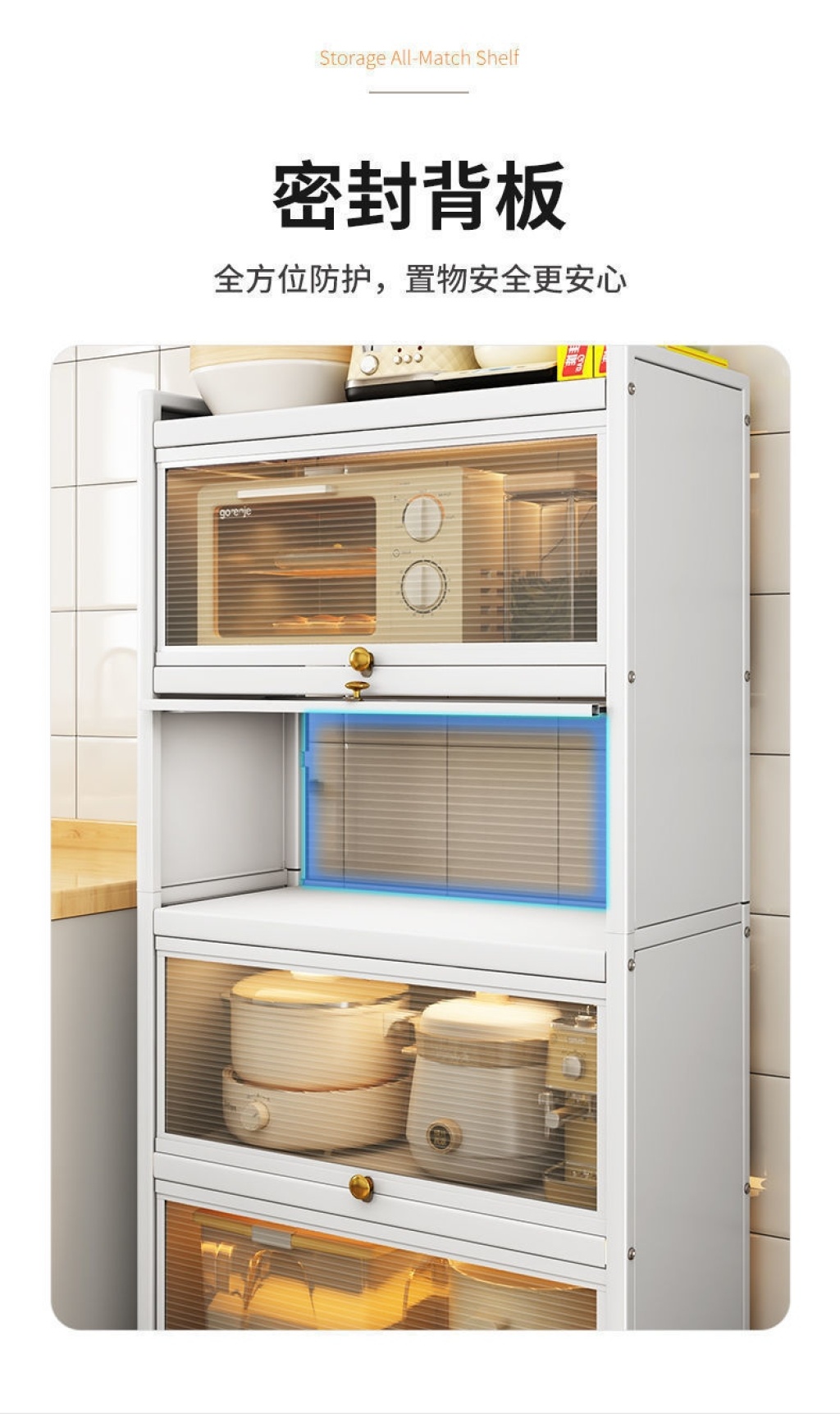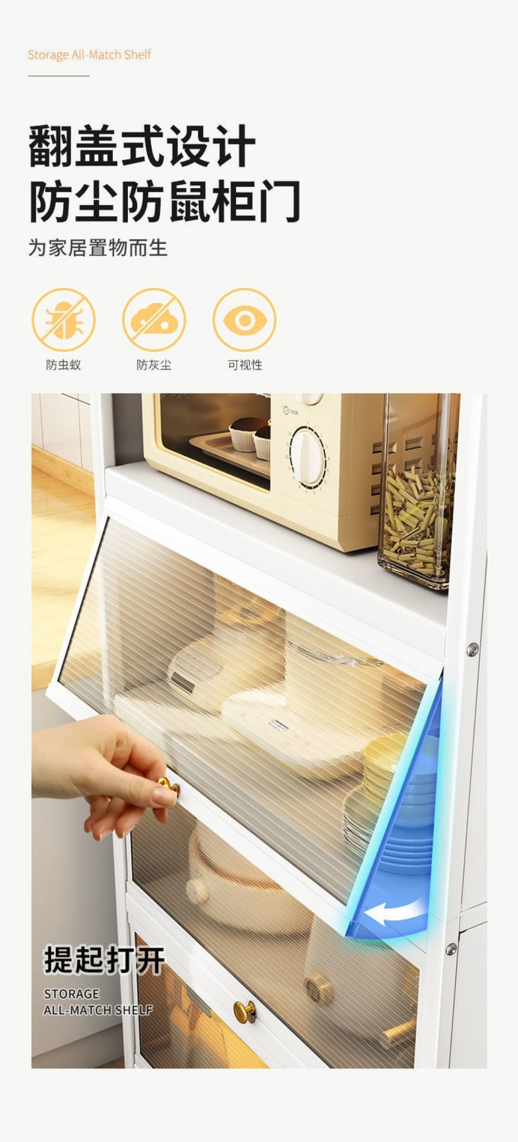 新款带门翻盖式厨房置物架落地式多层碗碟锅具储物柜微波炉收纳架 投诉