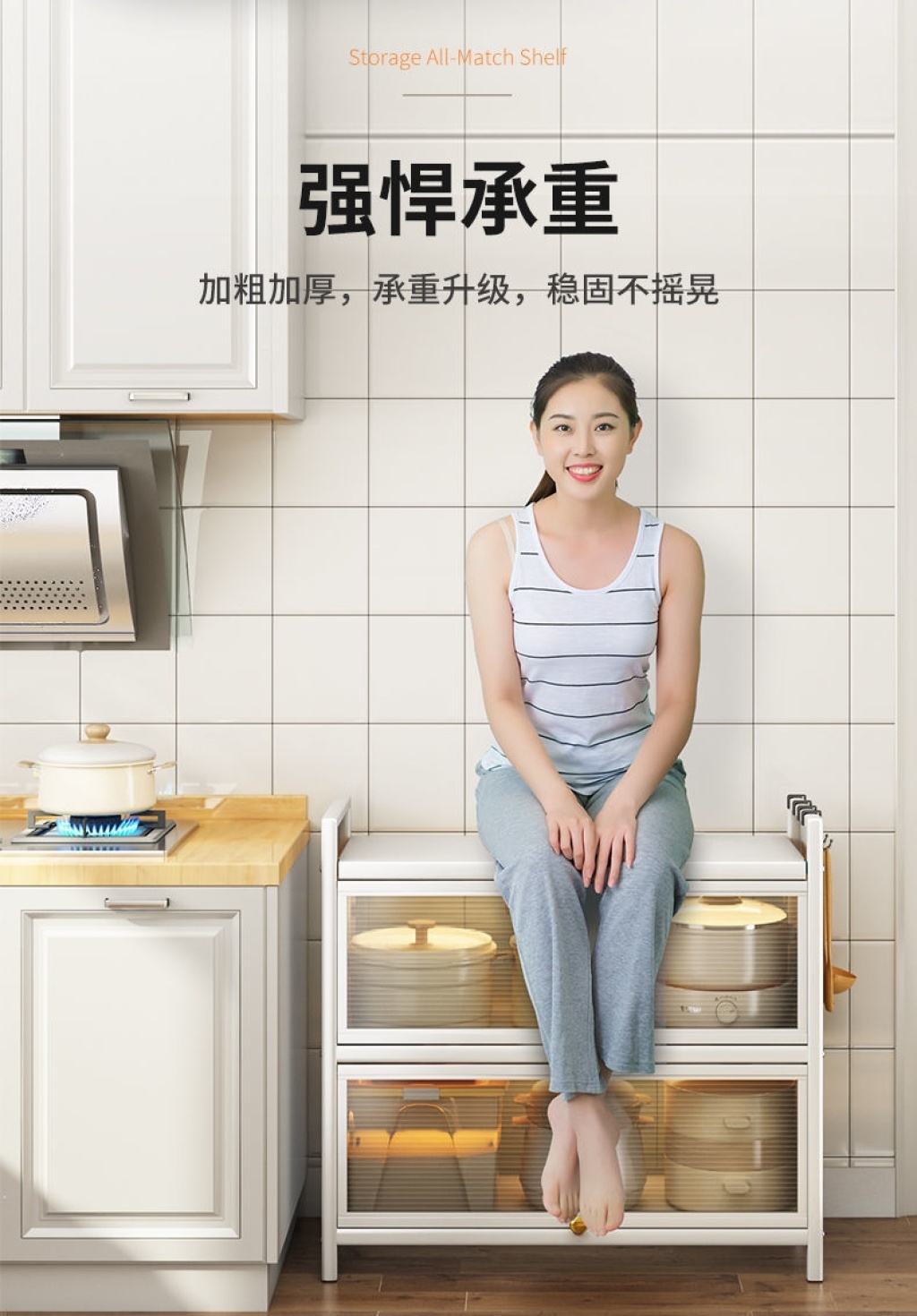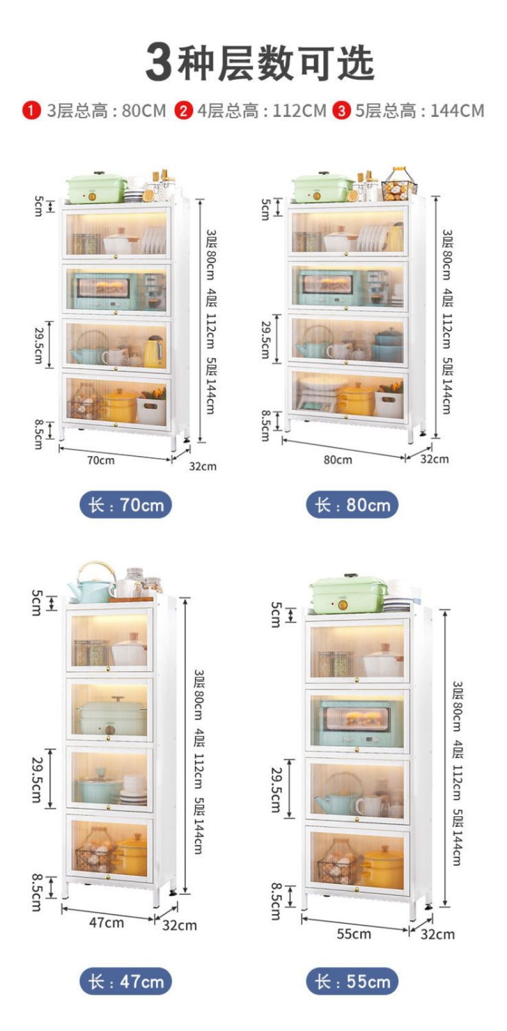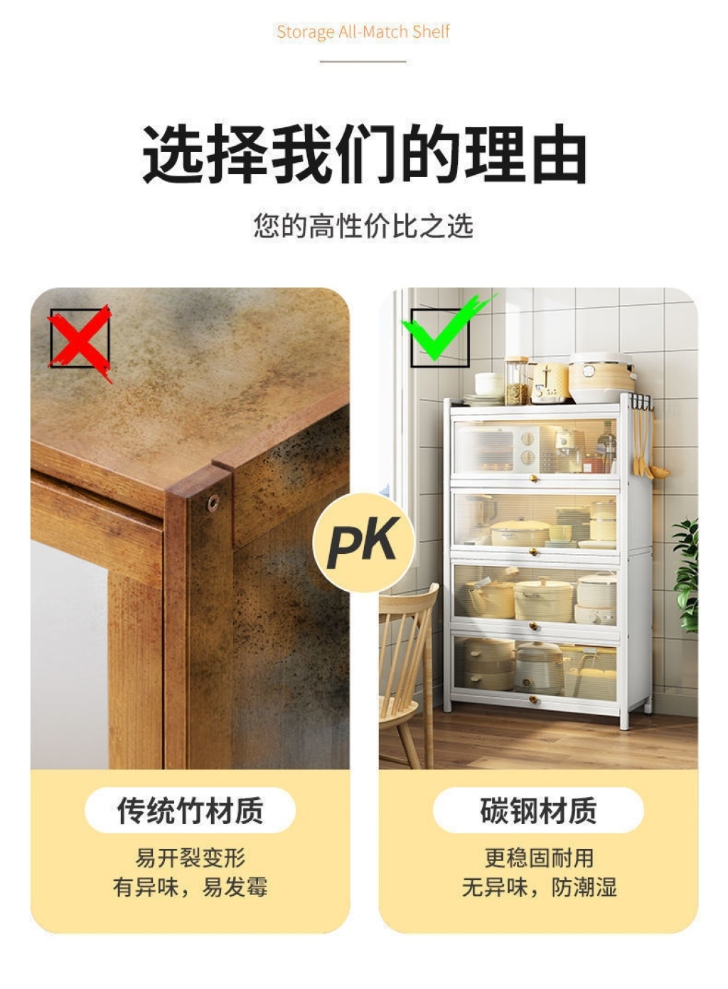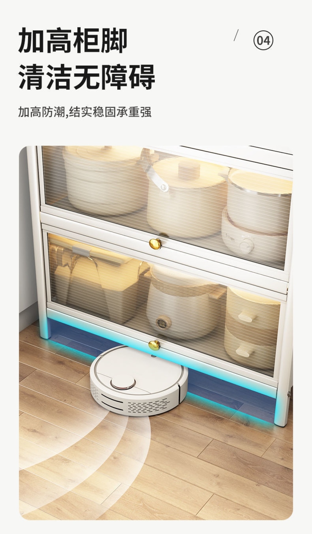 新款带门翻盖式厨房置物架落地式多层碗碟锅具储物柜微波炉收纳架 投诉