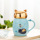 陶瓷杯子咖啡杯卡通学生情侣水杯小礼品杯猫咪镜面马克杯