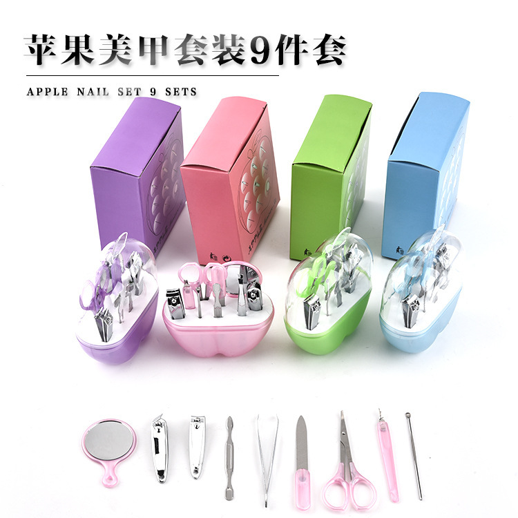 苹果9件指甲刀钳剪套装美容修脚婴儿宝不锈钢剪美甲工具彩盒包装 English | 投诉