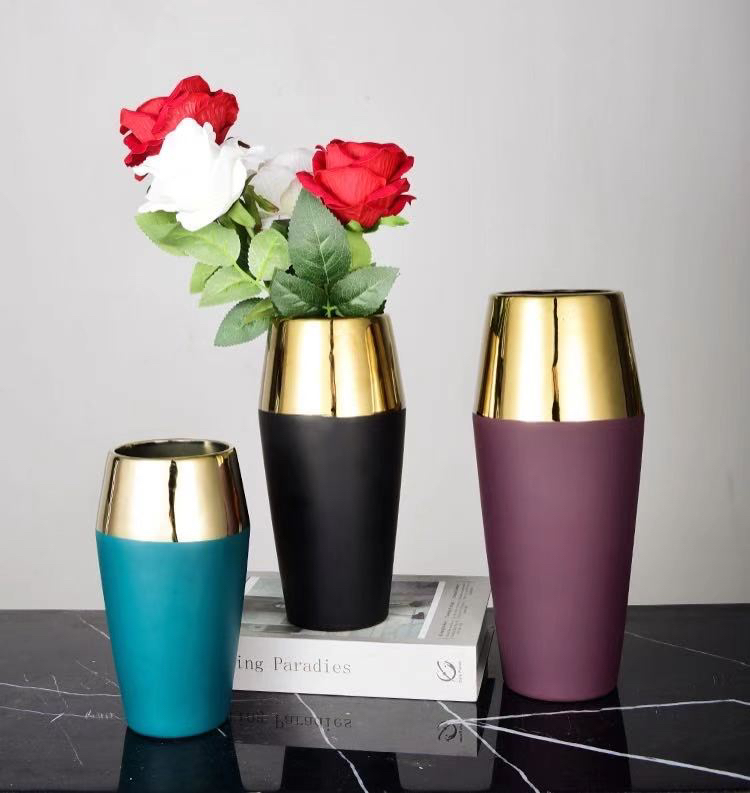 金色电镀陶瓷花瓶客厅装饰品酒店软装摆件工艺品