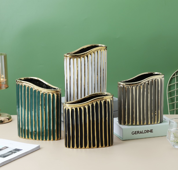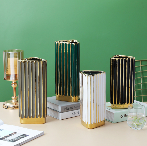 现代轻奢电镀色陶瓷花瓶摆件餐厅卧室客厅居家简约插花装饰 English | 投诉
