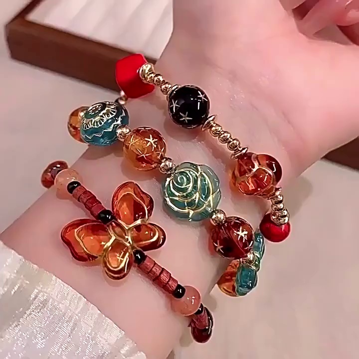 新中式彩色串珠蝴蝶手链女复古小众设计高级感手串时尚百手饰批发 投诉