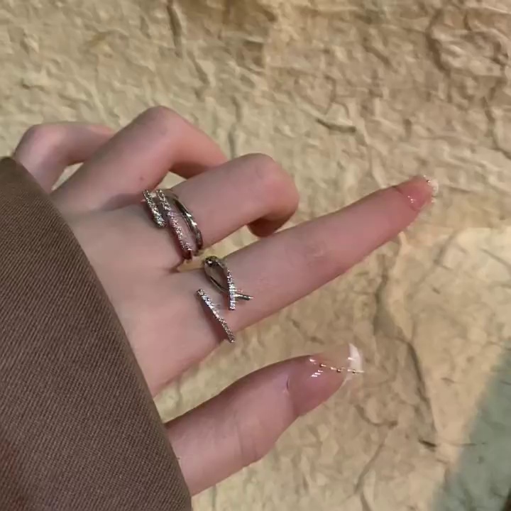 冷淡风锆石波纹戒指冷淡风高级叠戴个性食指戒时尚潮流套装开口戒
