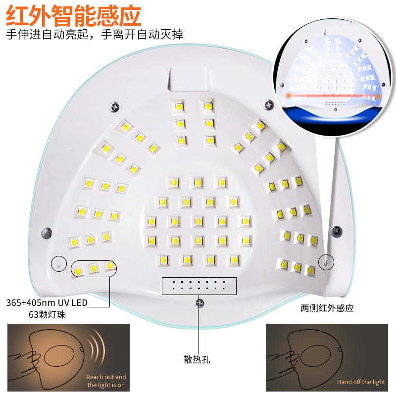 跨境新款双光源美甲灯 63颗灯珠智能感应大功率光疗机指甲烤灯