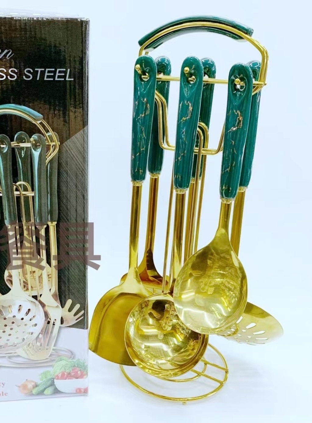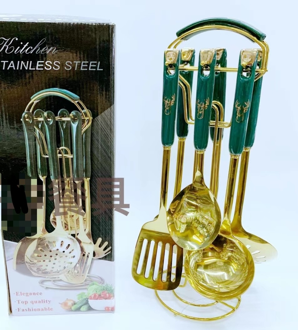 镀金不锈钢烹饪勺铲汤勺漏勺锅铲漏铲饭勺粉捞厨具礼品套装