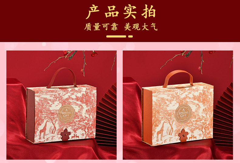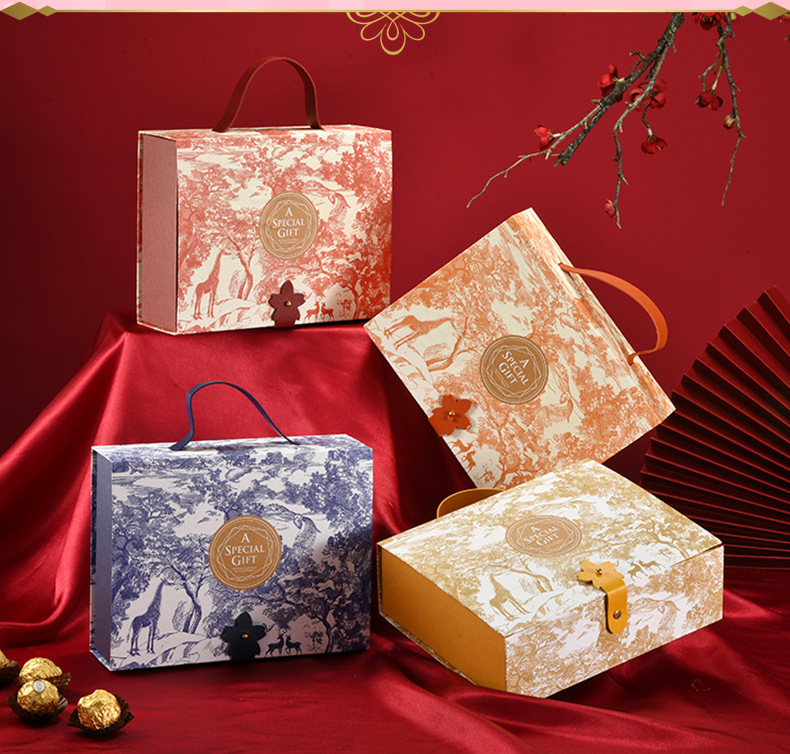 2022年新款喜糖盒 国潮复古手提盒翻盖纸盒 印花礼品包装伴手礼盒