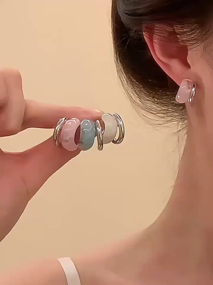 冰萃碧落蓝~冰透感法式树脂C型耳环女小众甜美耳饰高级感耳钉