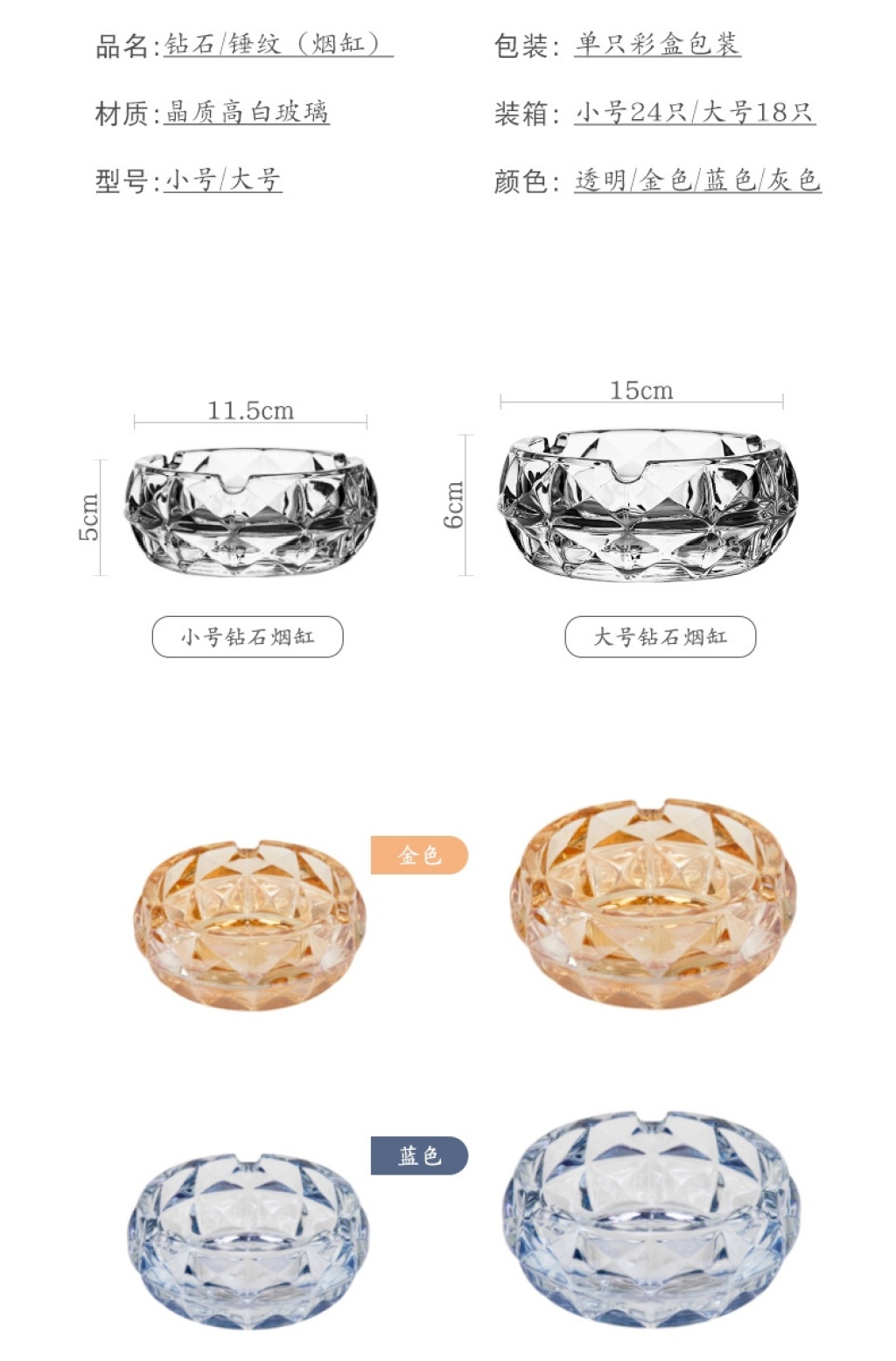 水晶烟灰缸批发家用客厅摆件创意酒店KTV会议欧式圆形玻璃烟灰缸 投诉